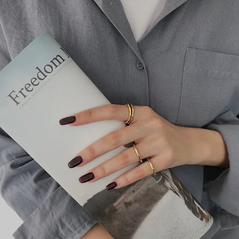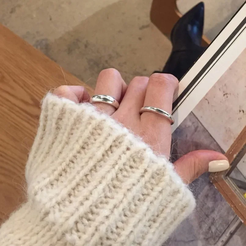 Real Retro TikTok Heavy Industry 2mm 3mm Line Ring Korea S925 Sterling Silver Simple Model Glossy Wholesale