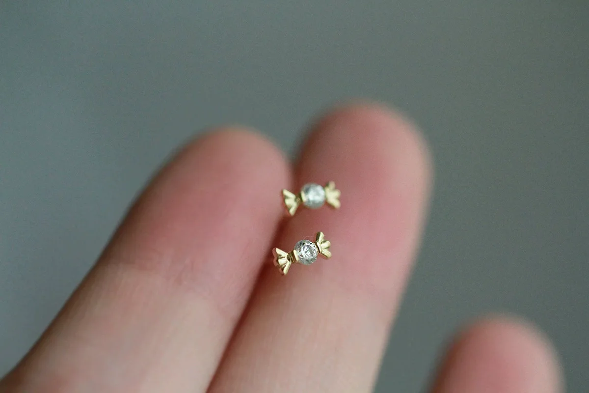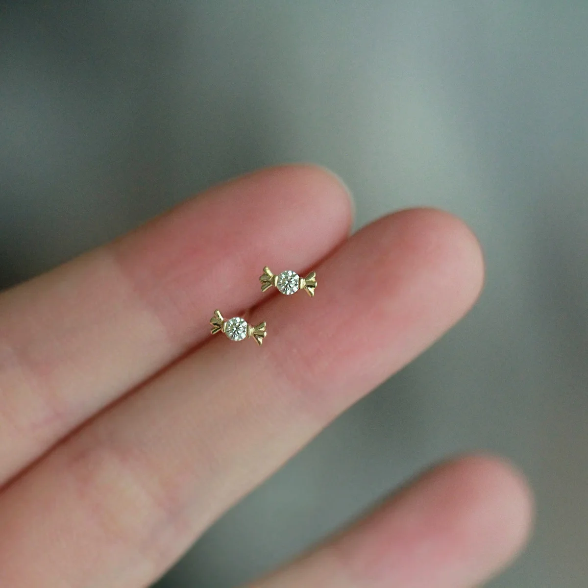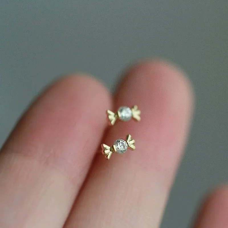 S925 Silver 14K Gold Plated Candy Zircon Earrings Korean Japanese Sweet Mini Studs Dainty Delicate Everyday Jewelry for Women