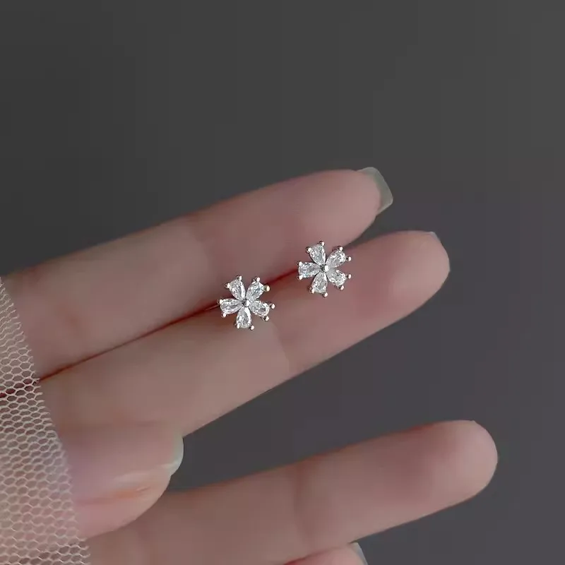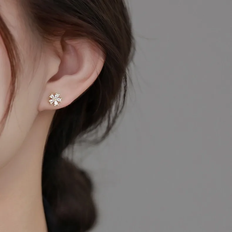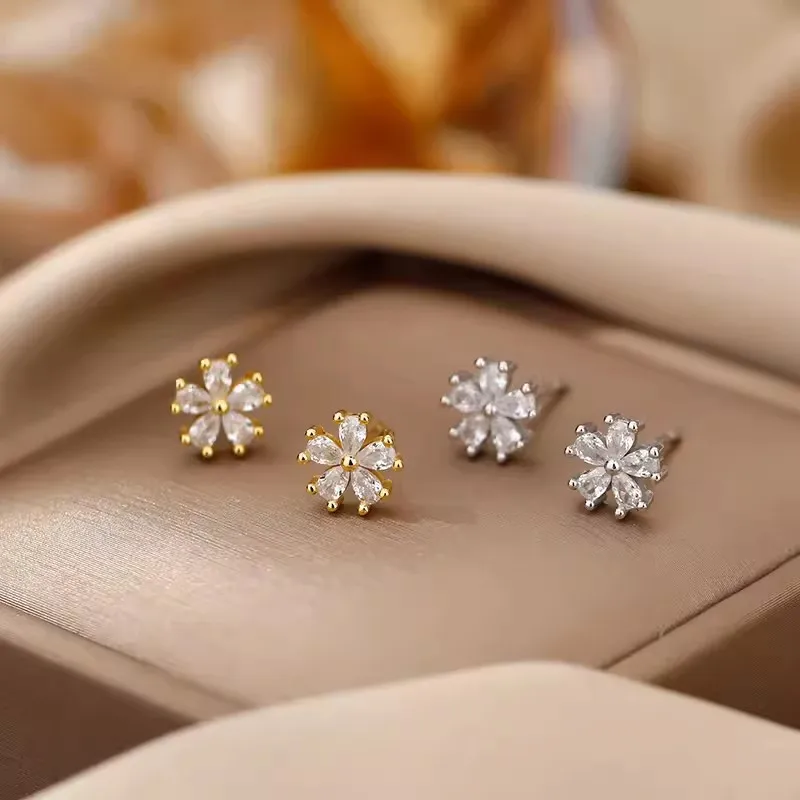 S925 Silver 14K Gold Plated Flower Zircon Earrings for Women Dainty Elegant Floral Studs Everyday Luxury Ear Jewelry Gift
