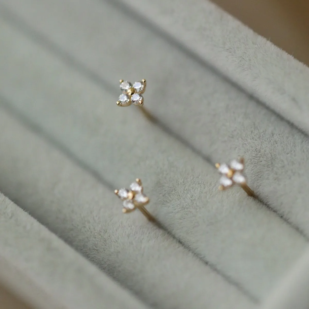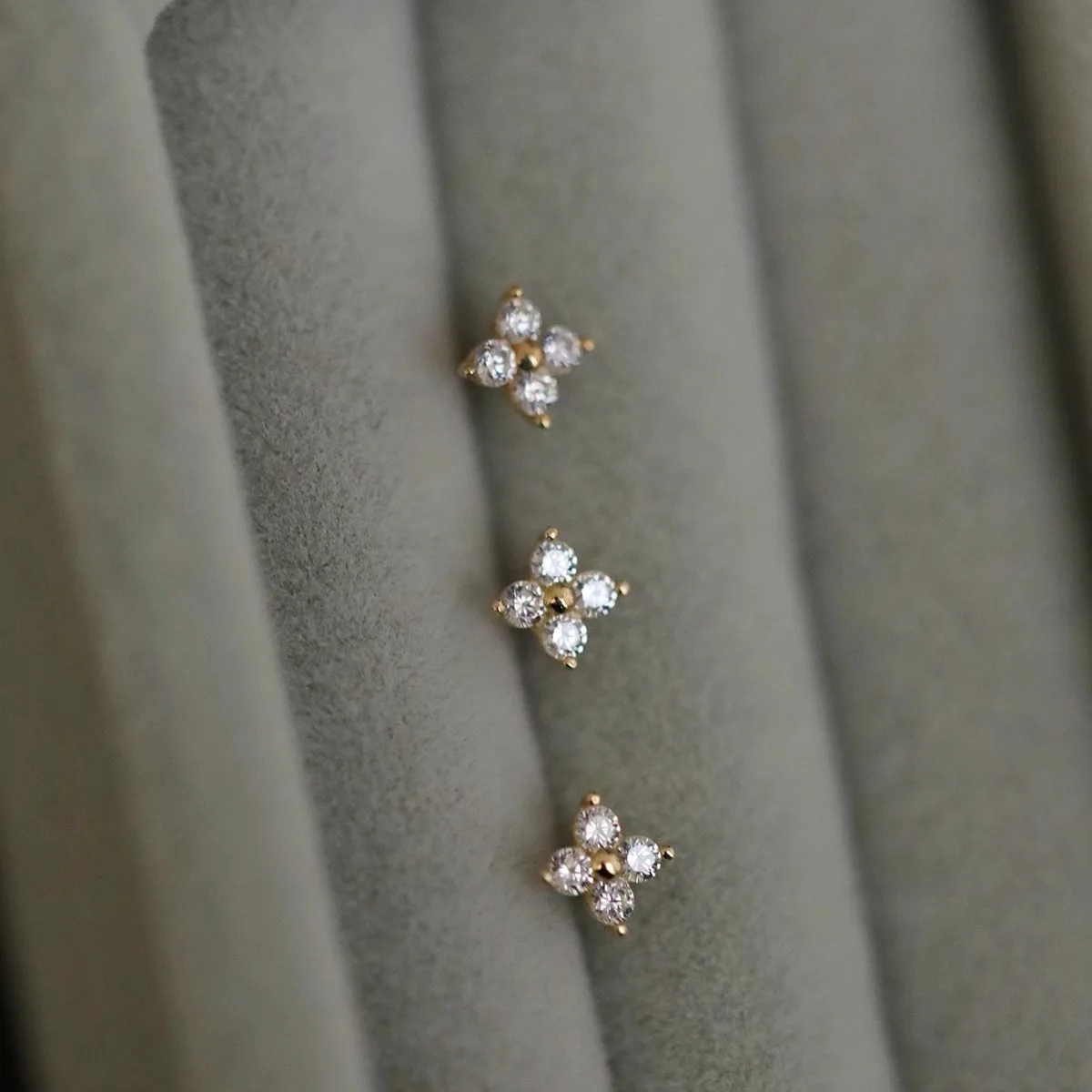 S925 Silver 14K Gold Plated Four Petal Flower Zircon Earrings Dainty Floral Studs Minimalist Everyday Jewelry Gift for Women