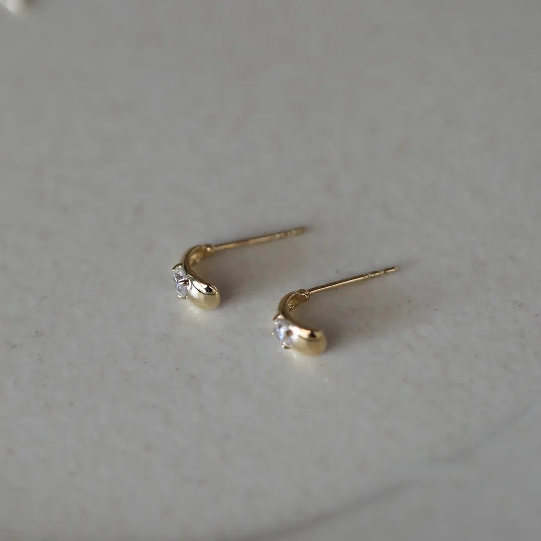 S925 Silver 14K Gold Plated Mini Waterdrop Zircon Earrings for Women Delicate Glossy Teardrop Studs Versatile Office Elegant