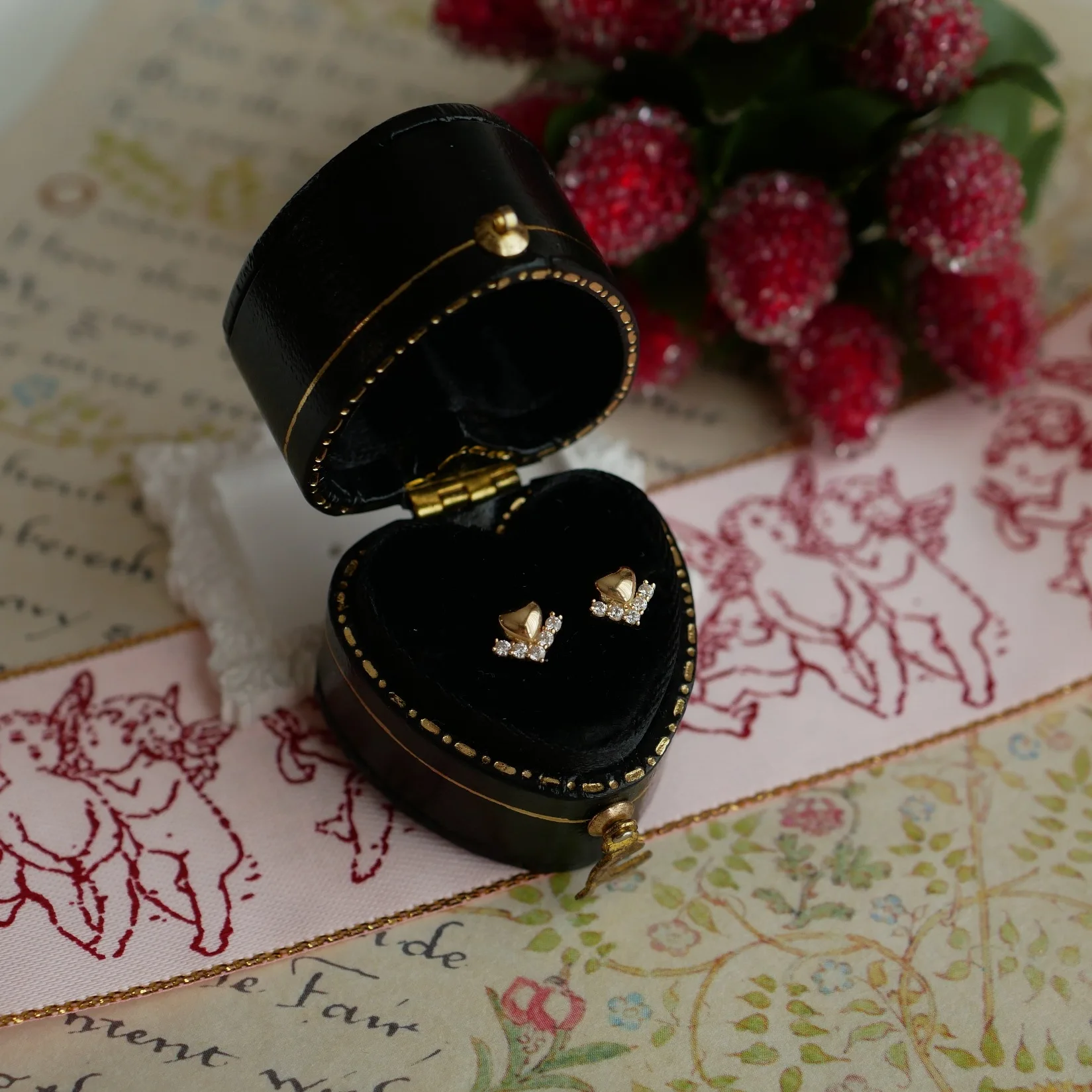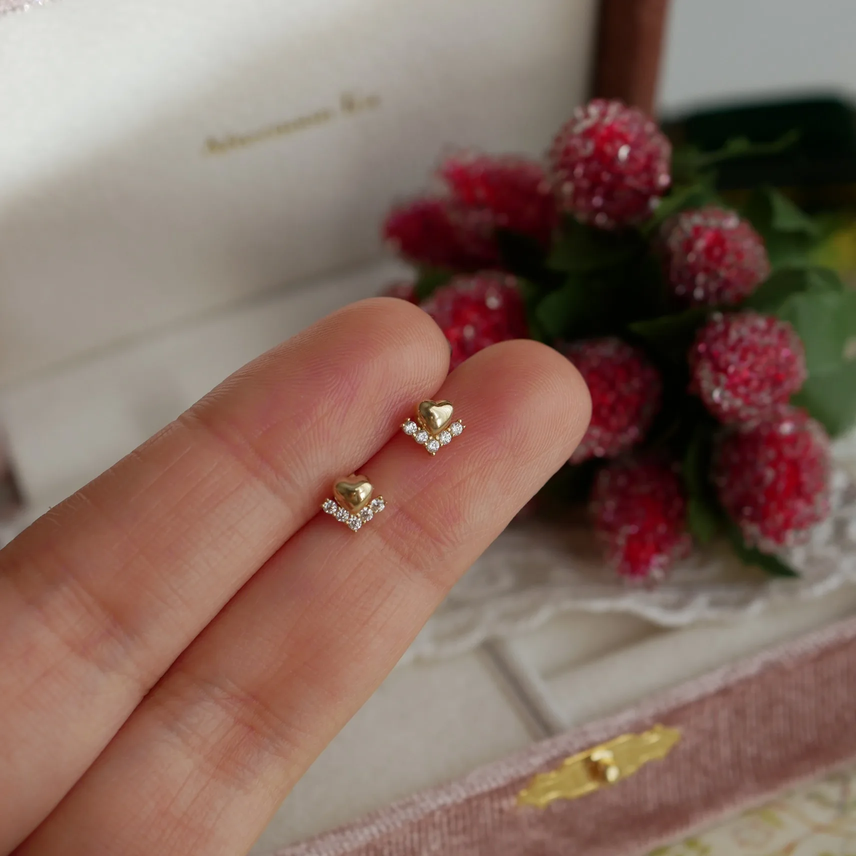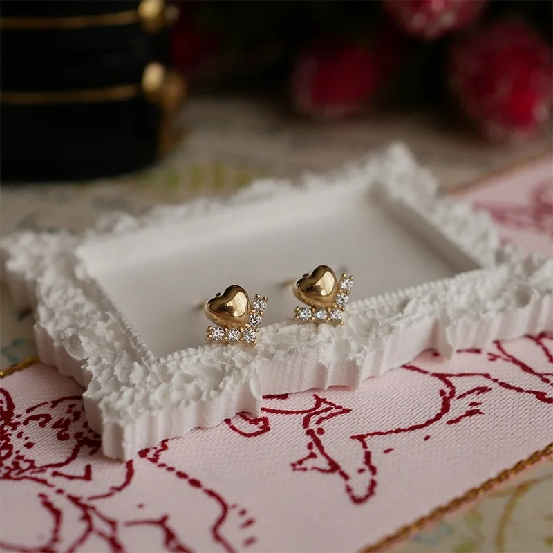 S925 Silver 18K Gold Plated Mini Heart Earrings wi...