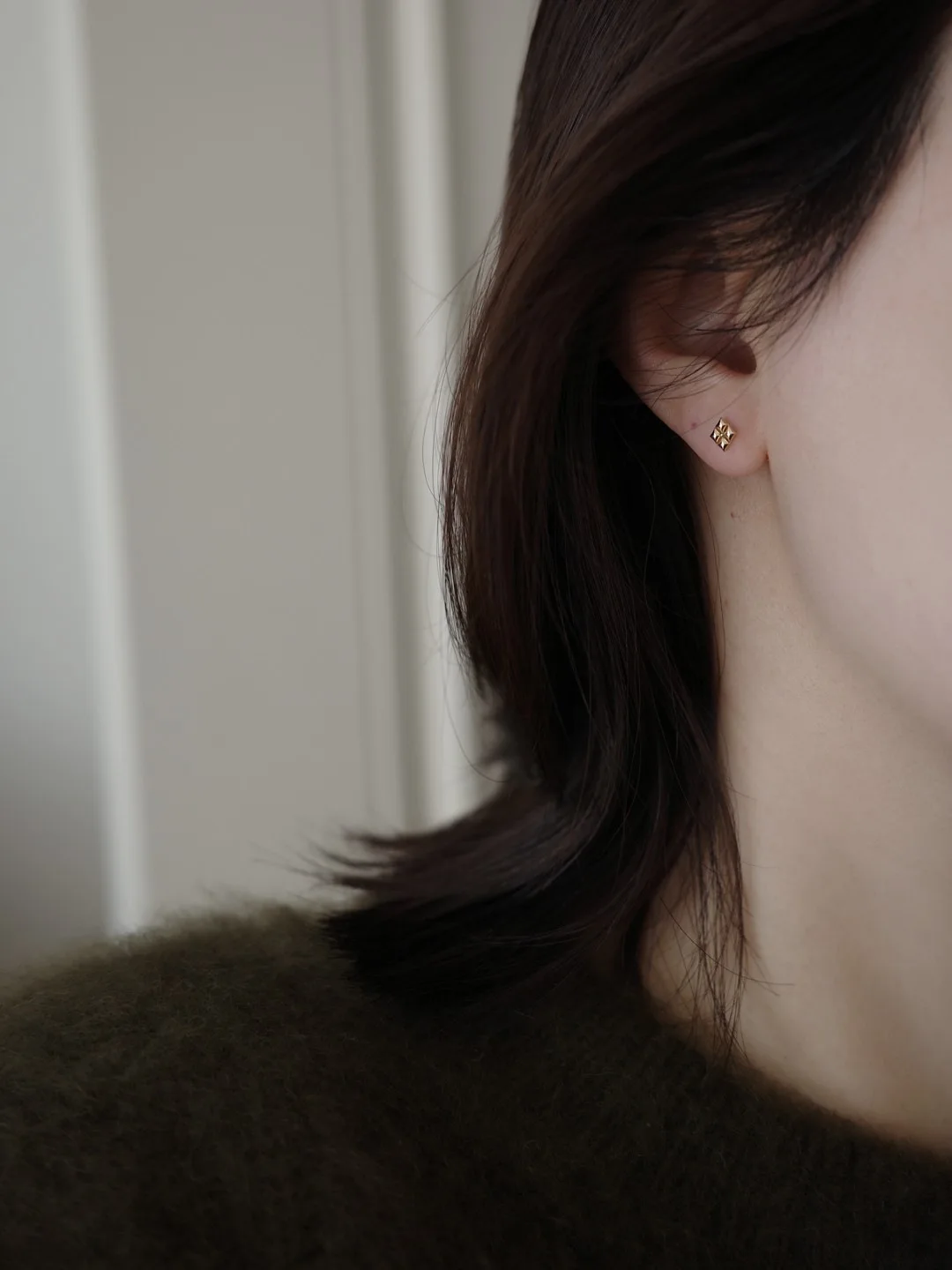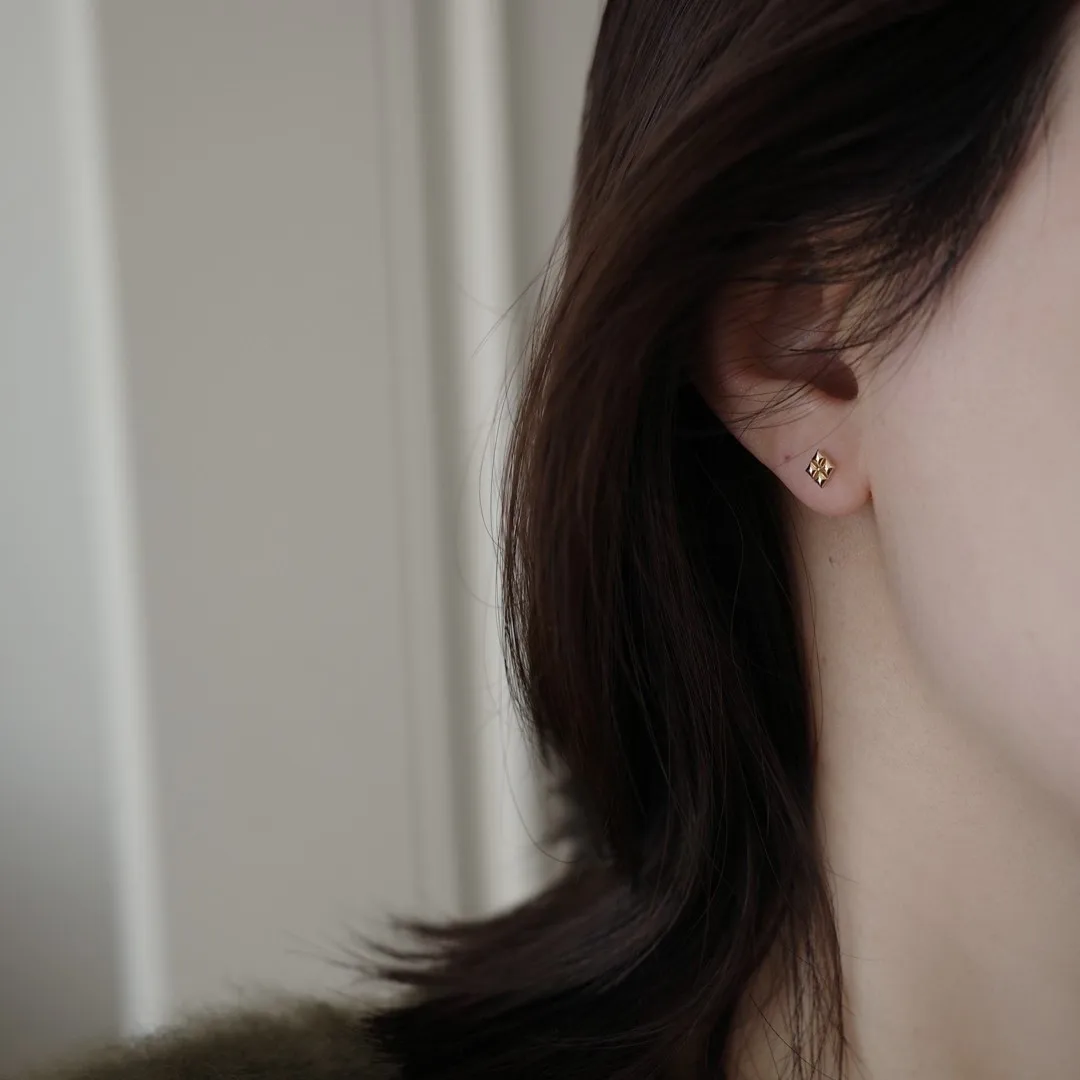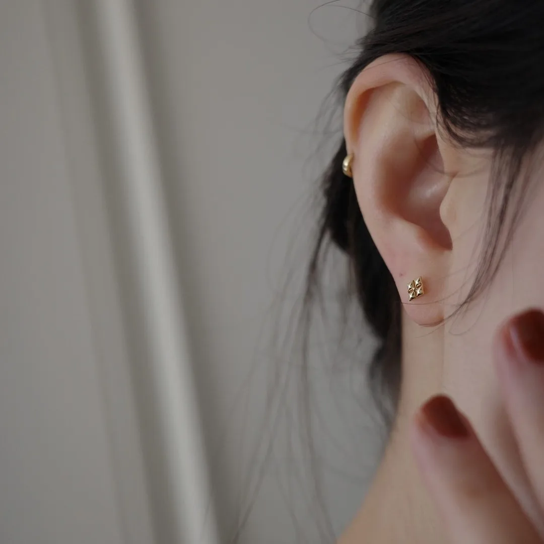 S925 Silver 18K Gold Plated Mini Rhombus Waffle Texture Earrings Geometric Shiny Small Studs for Women Daily Low-Key Ear Jewelry