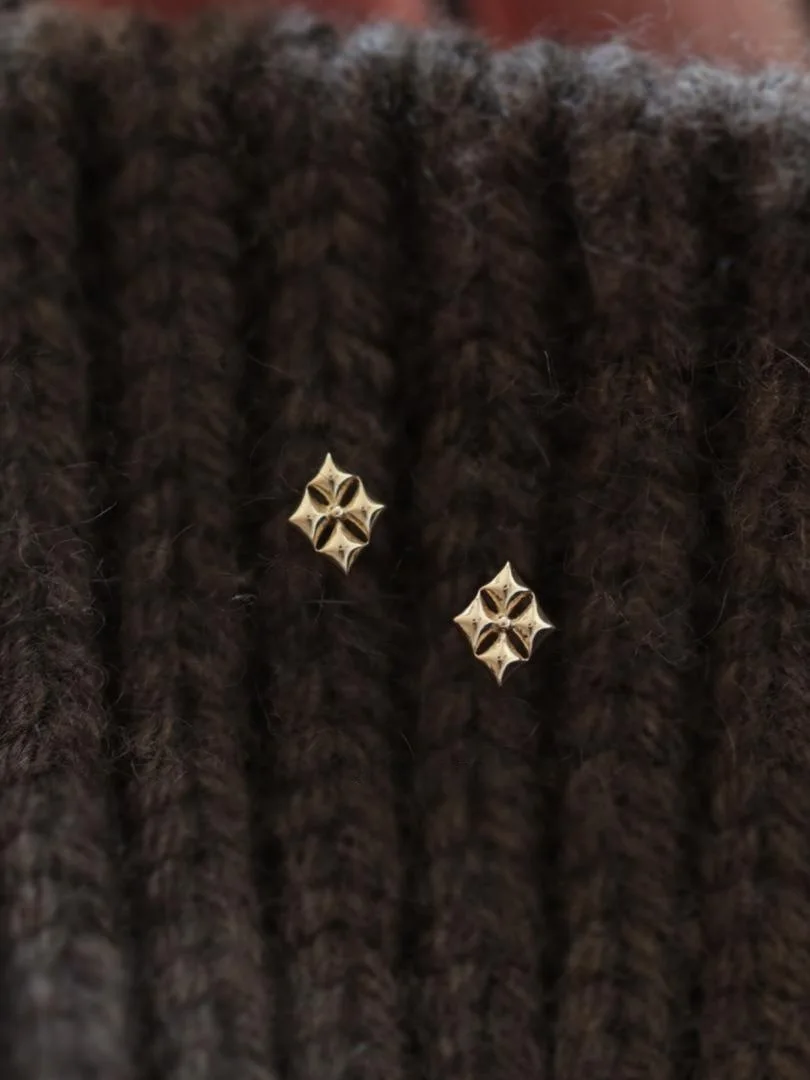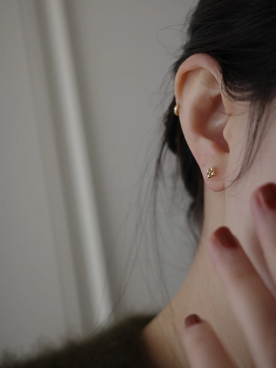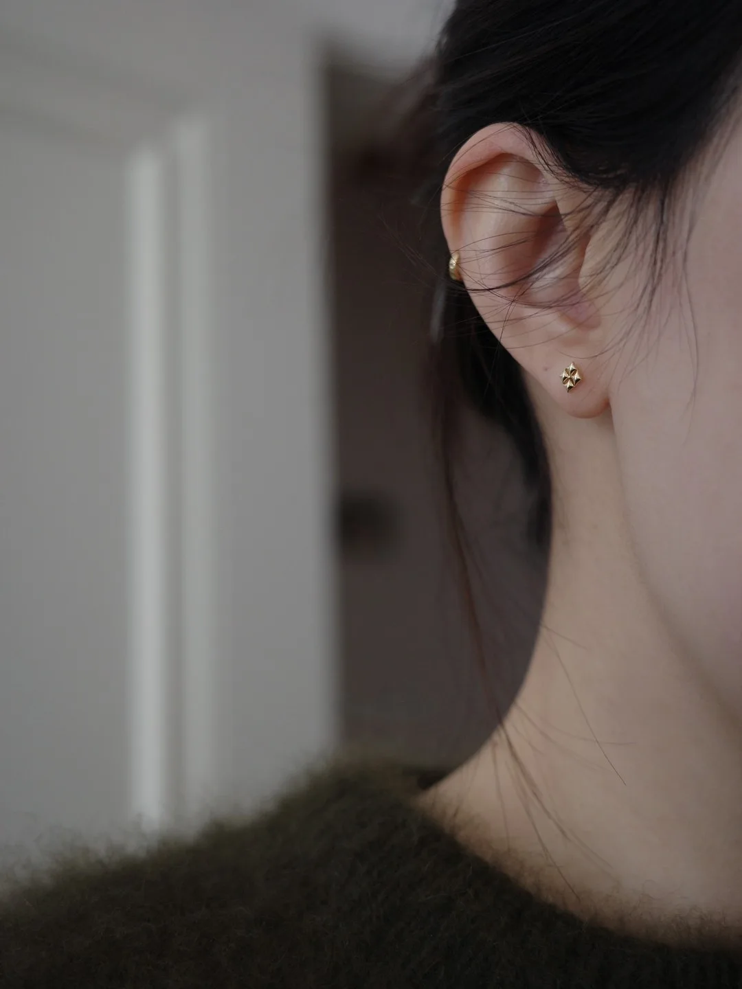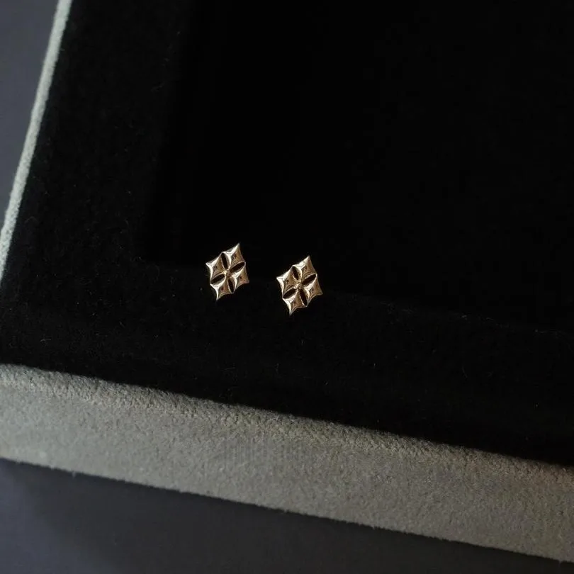 S925 Silver 18K Gold Plated Mini Rhombus Waffle Texture Earrings Geometric Shiny Small Studs for Women Daily Low-Key Ear Jewelry