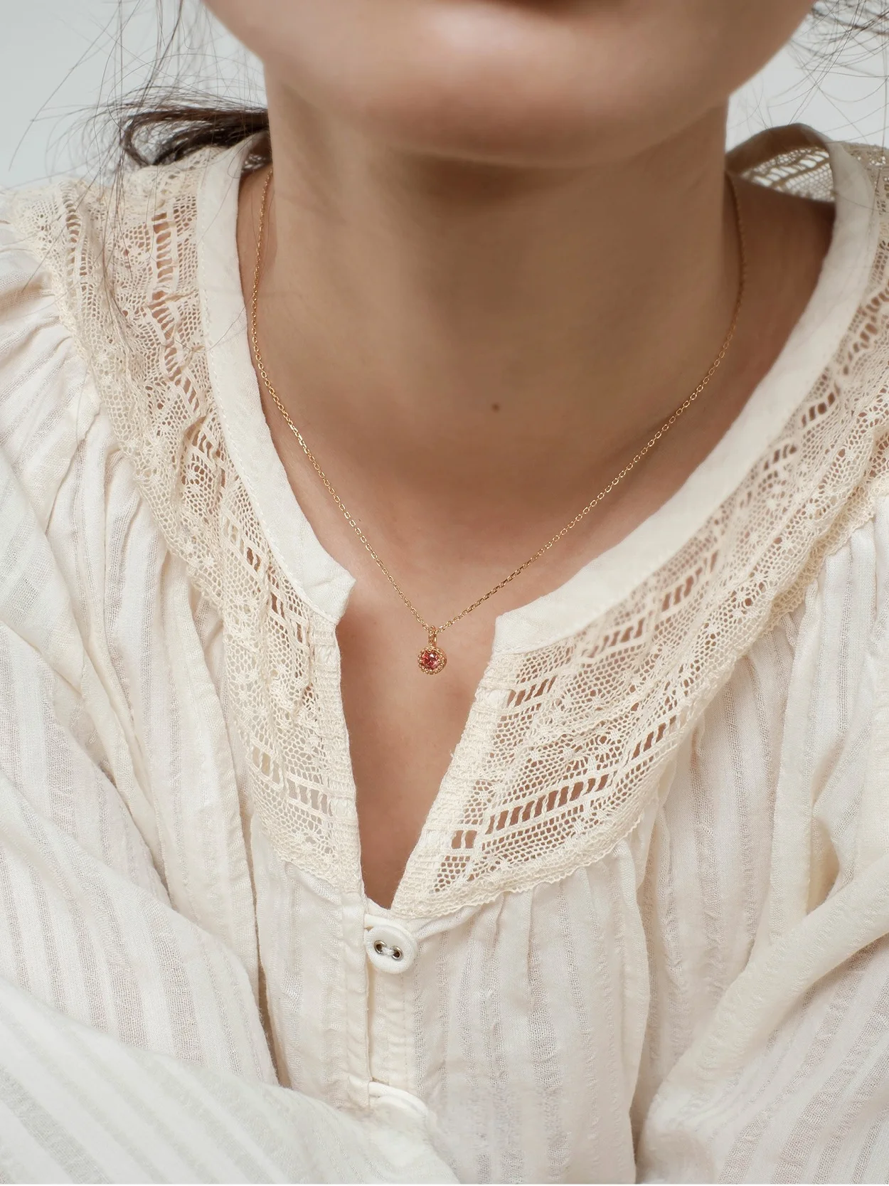 S925 Silver 18K Gold Plated Rose Red Zircon Pendant Necklace For Women Vintage Minimalist Elegant Dainty Layering Chain Gift