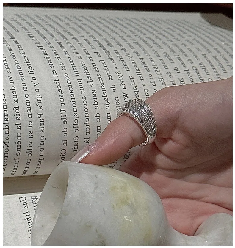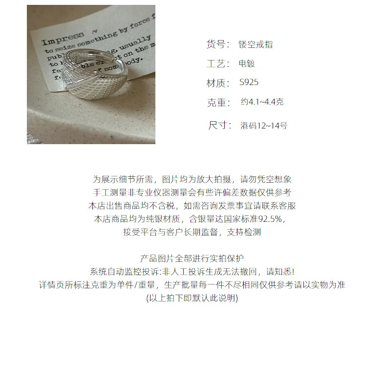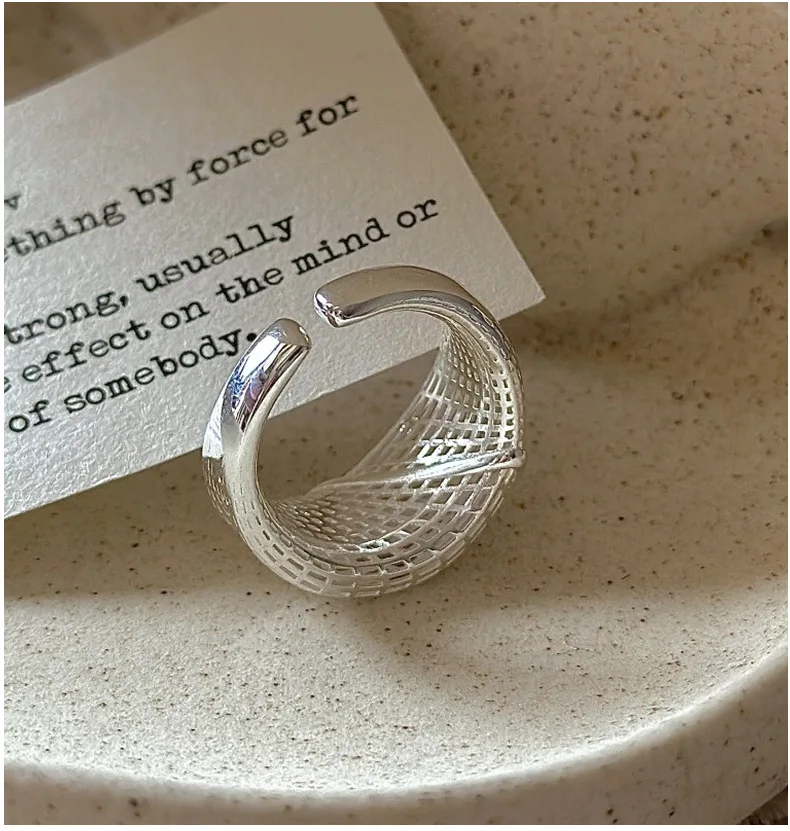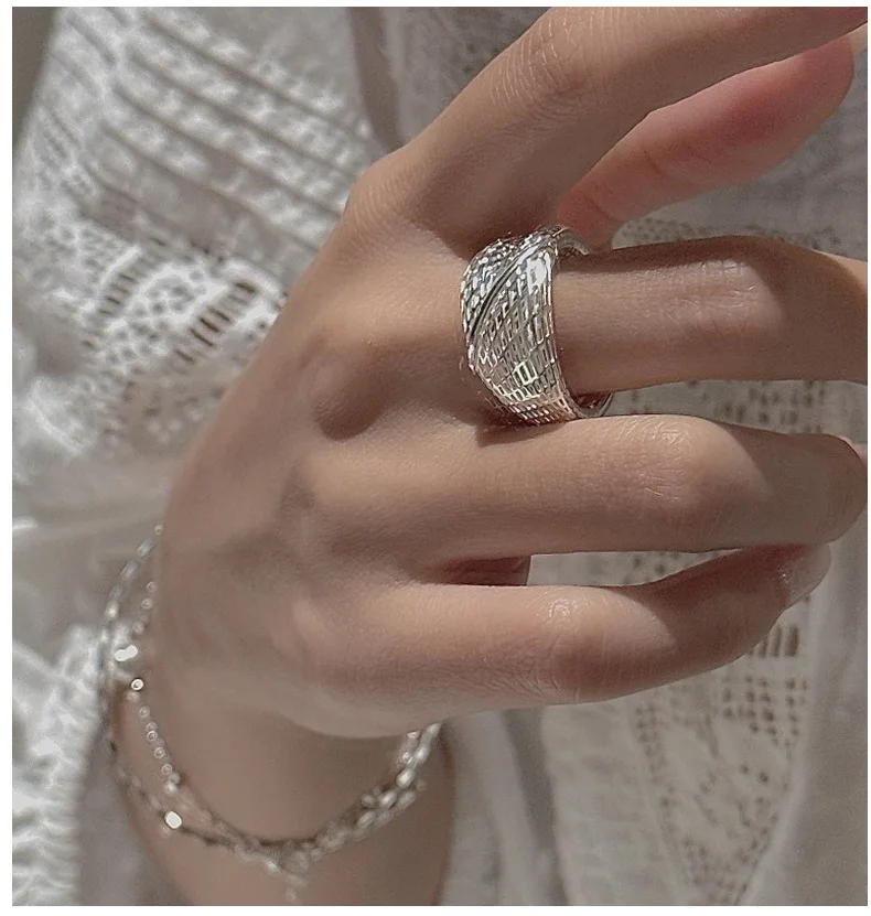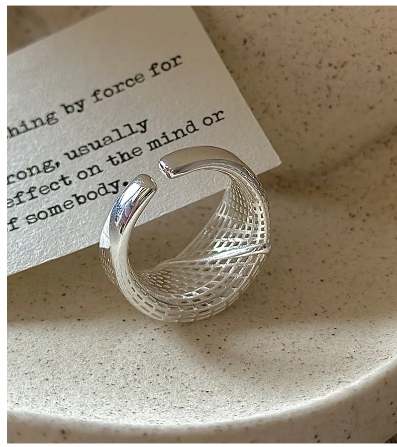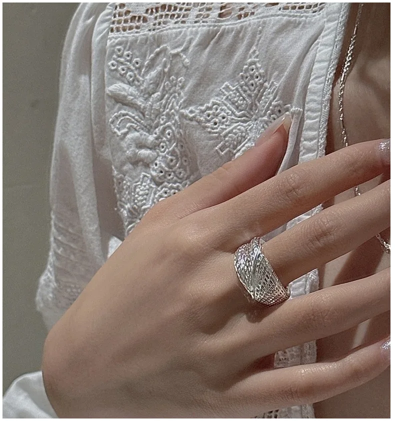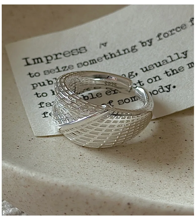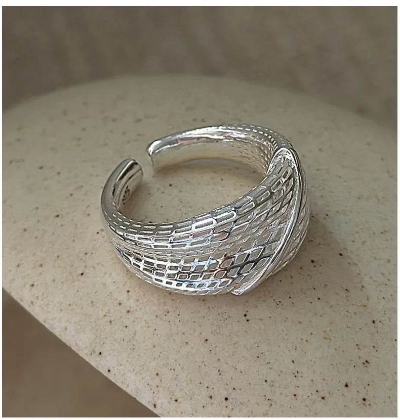S925 Silver 3D Minimalist Ring Korean Vintage Style Textured Geometric Dainty Wholesale Jewelry for Women