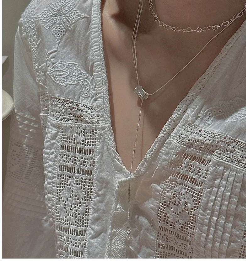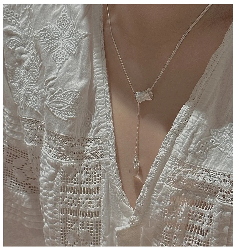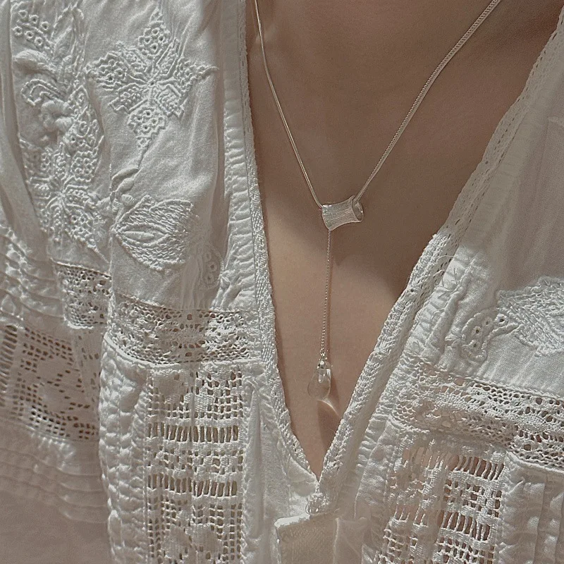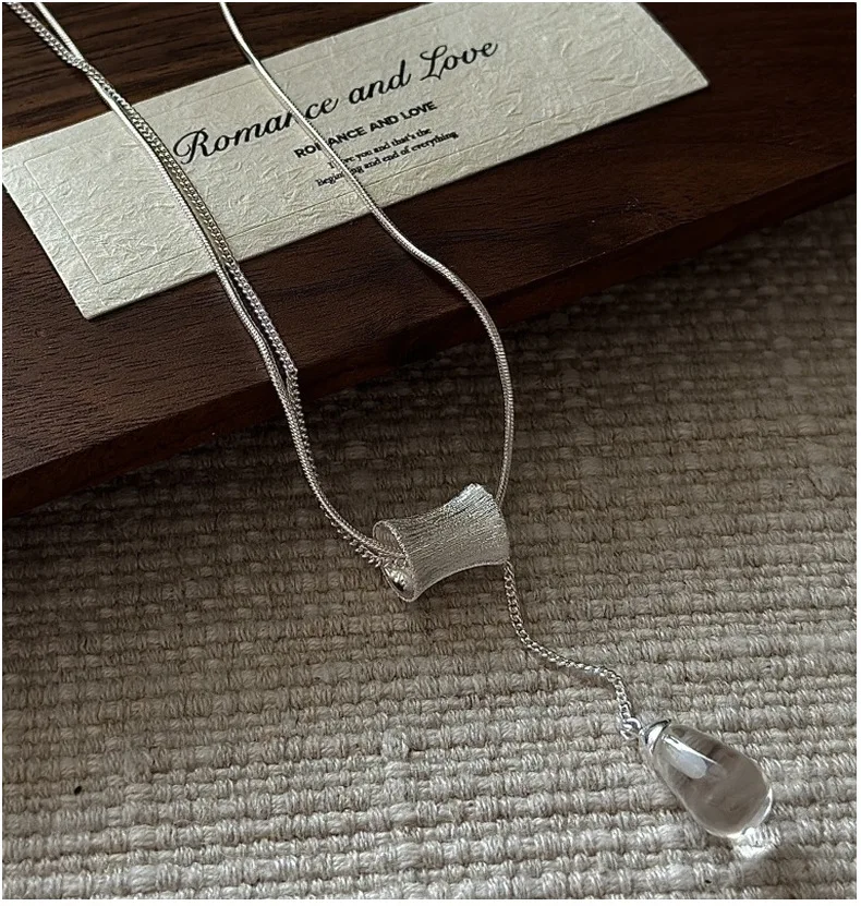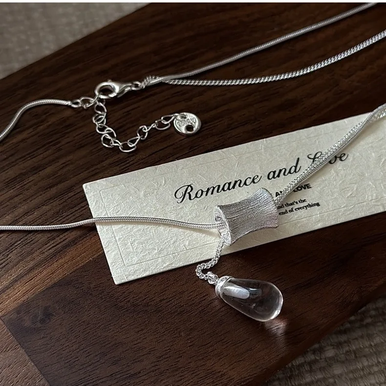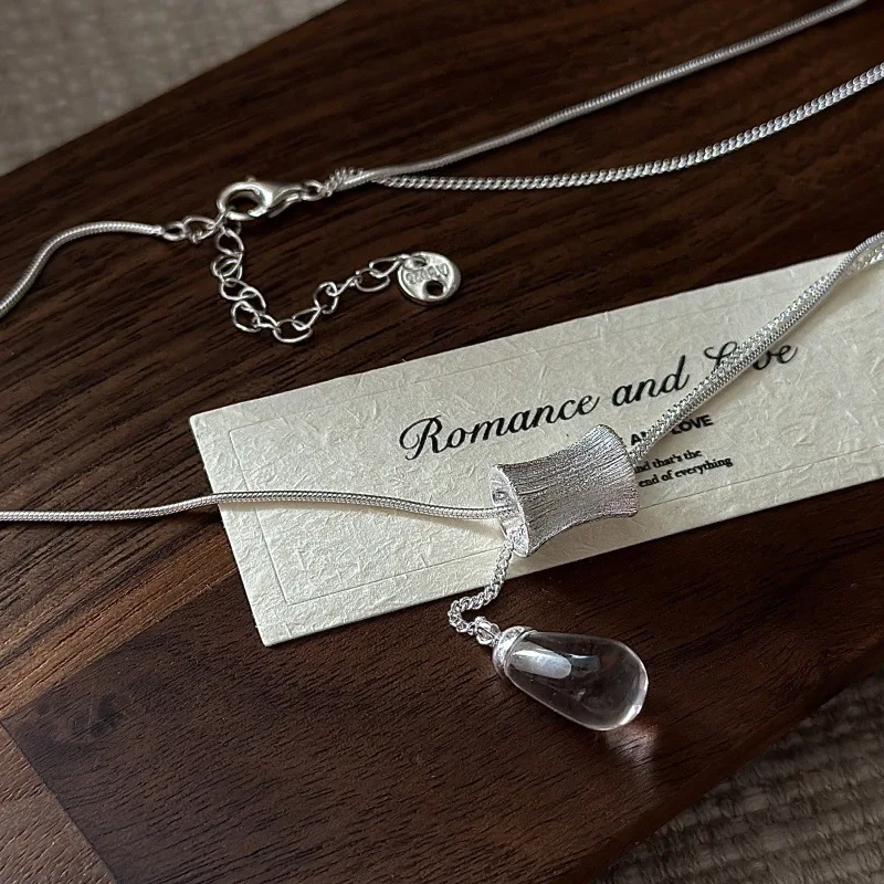 S925 Silver Engraved Crystal Pendant Necklace Korean Vintage Style Textured Minimalist Dainty Wholesale Jewelry for Women