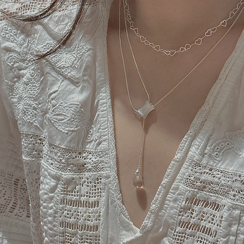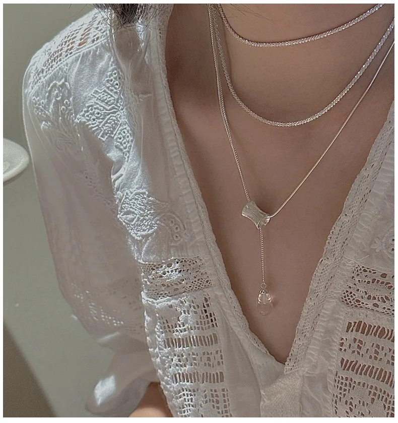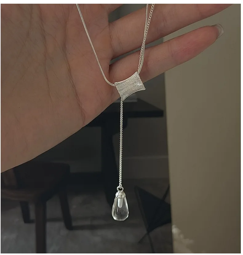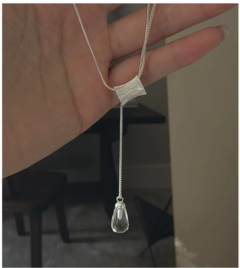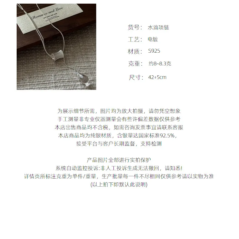 S925 Silver Engraved Crystal Pendant Necklace Korean Vintage Style Textured Minimalist Dainty Wholesale Jewelry for Women