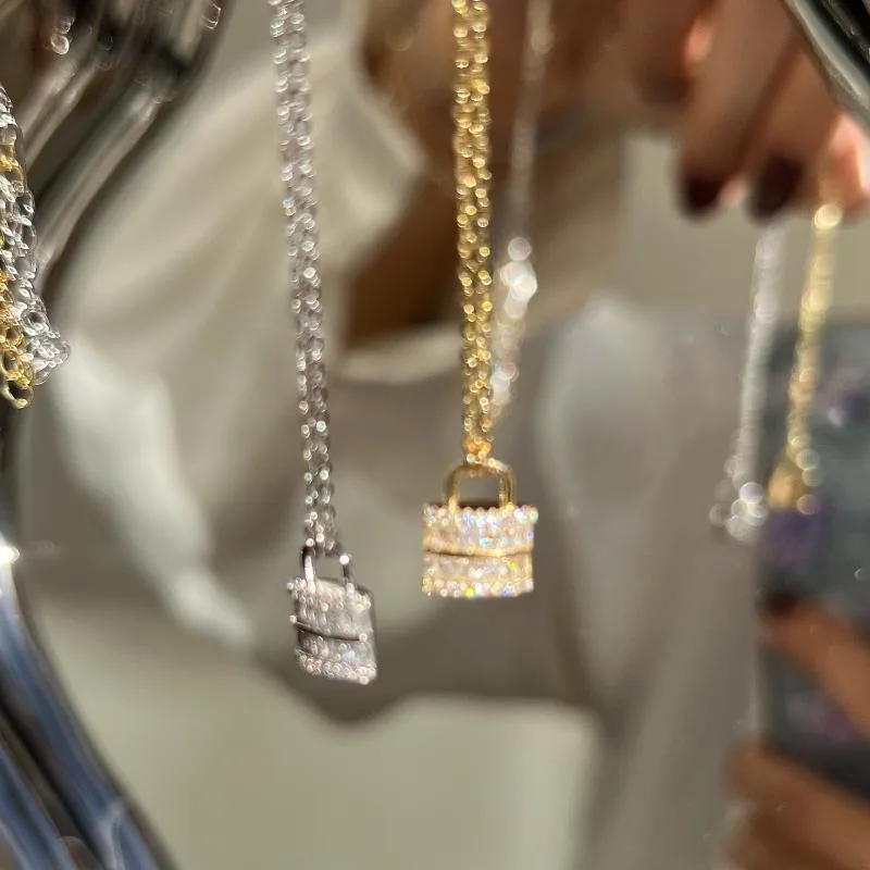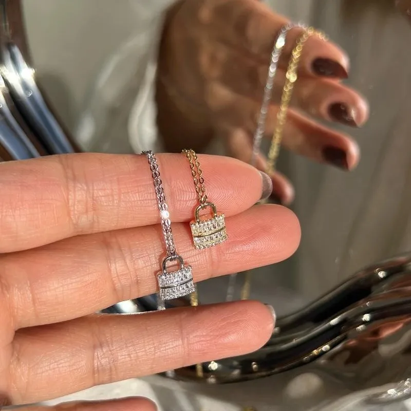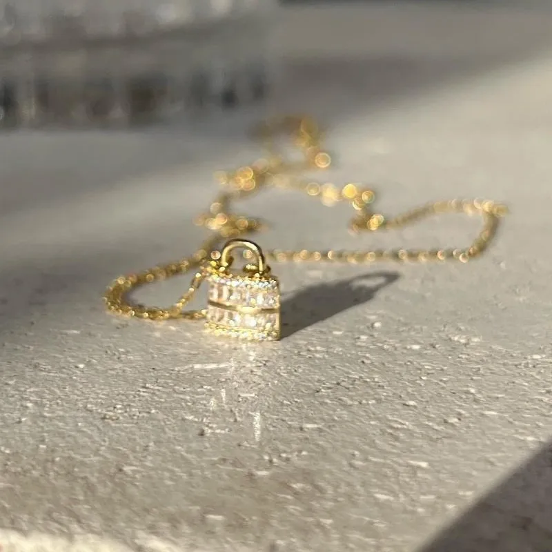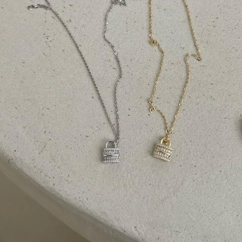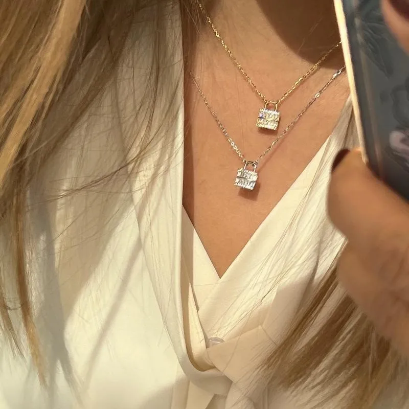 S925 Silver Gold Plated Square Zircon Lock Pendant Necklace For Women Minimalist Elegant Geometric Layering Chain Jewelry Gift