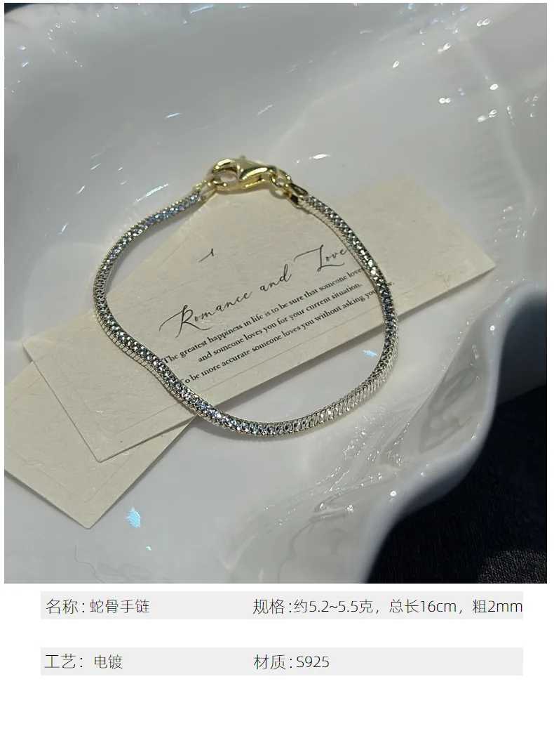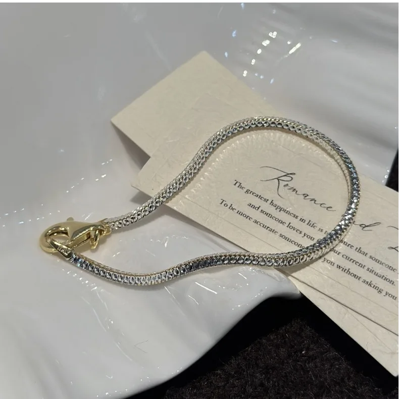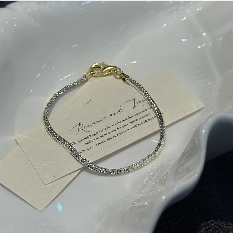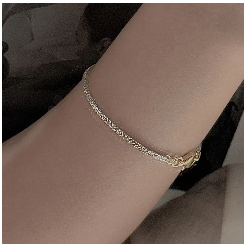 S925 Silver Italian Craft Two-Tone Snake Chain Bracelet Stackable Minimalist Dainty Wholesale Jewelry for Women