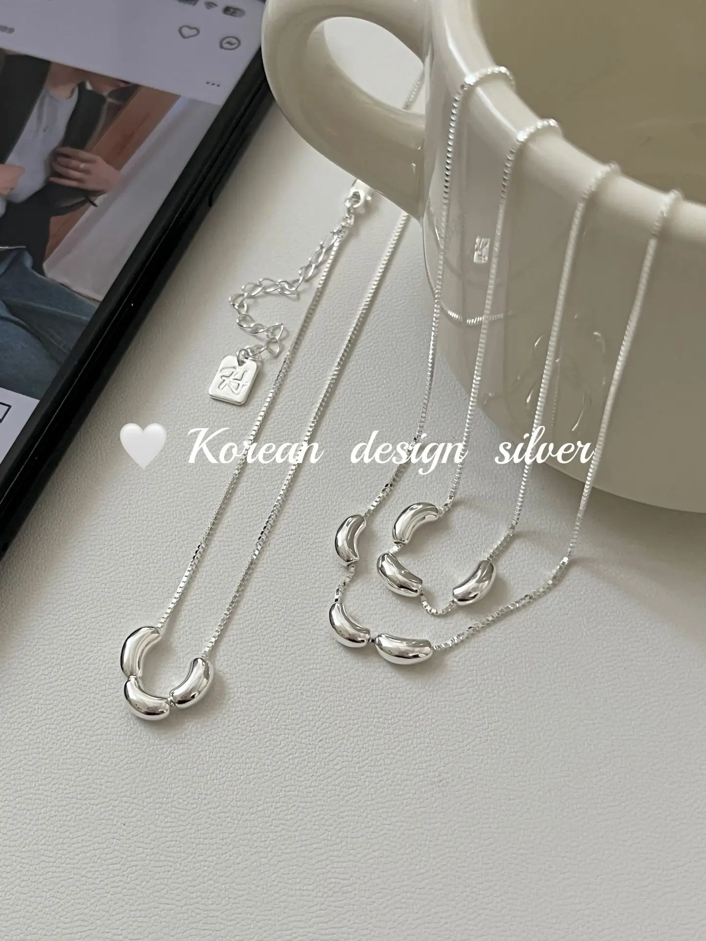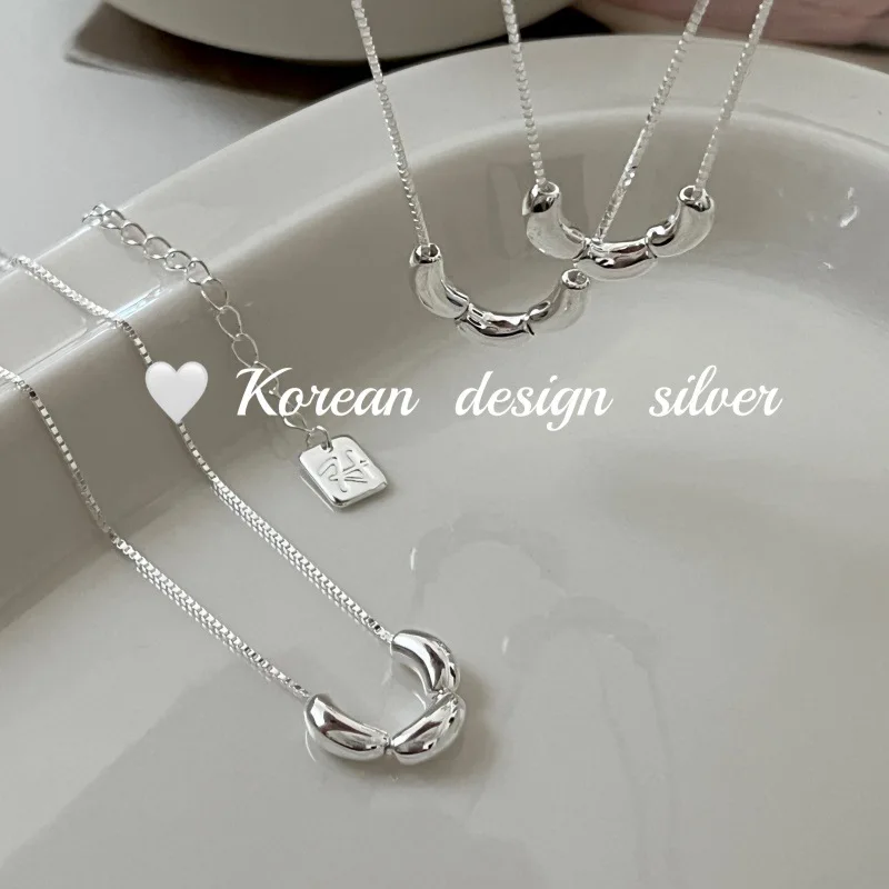 S925 Silver Oval Bead Chain Necklace Korean INS Minimalist Mirror Polish Layering Dainty Jewelry for Women
