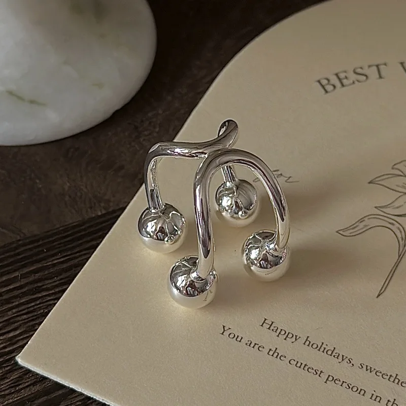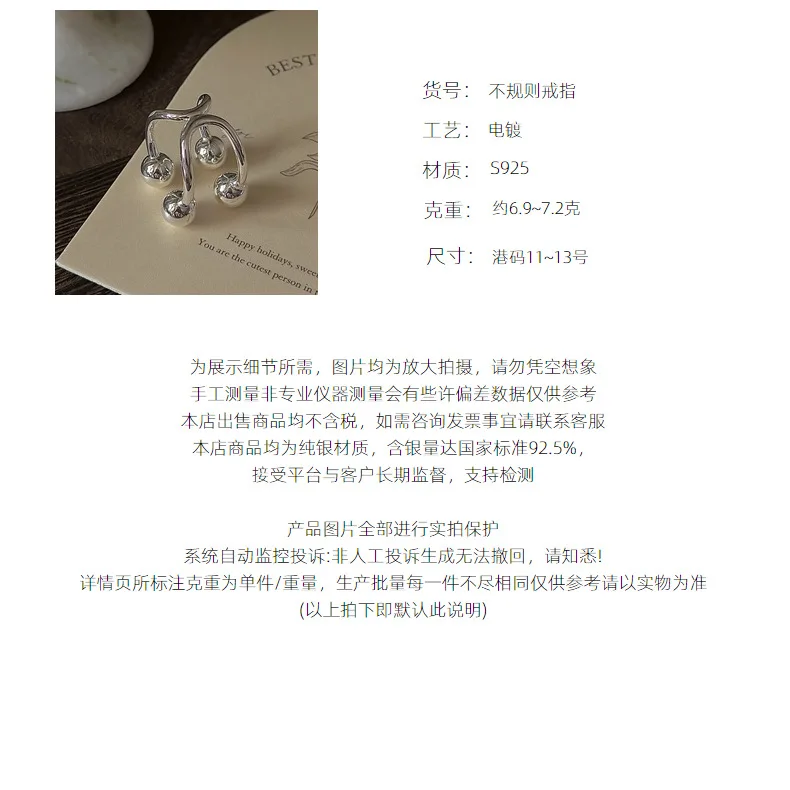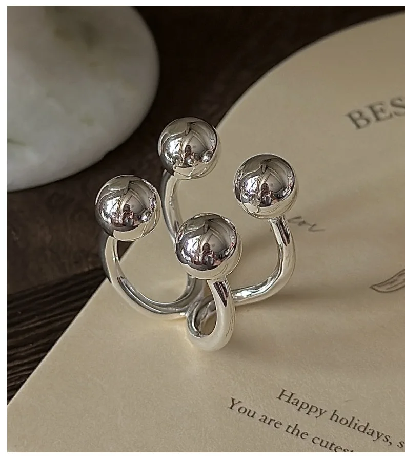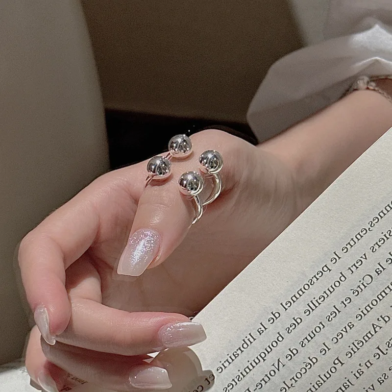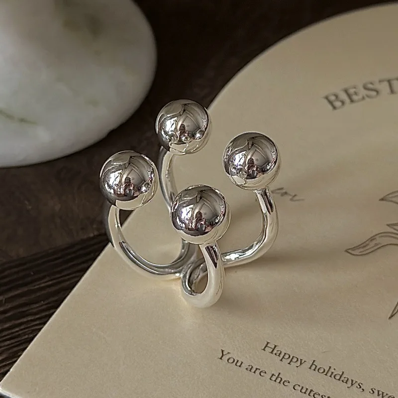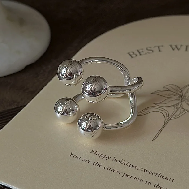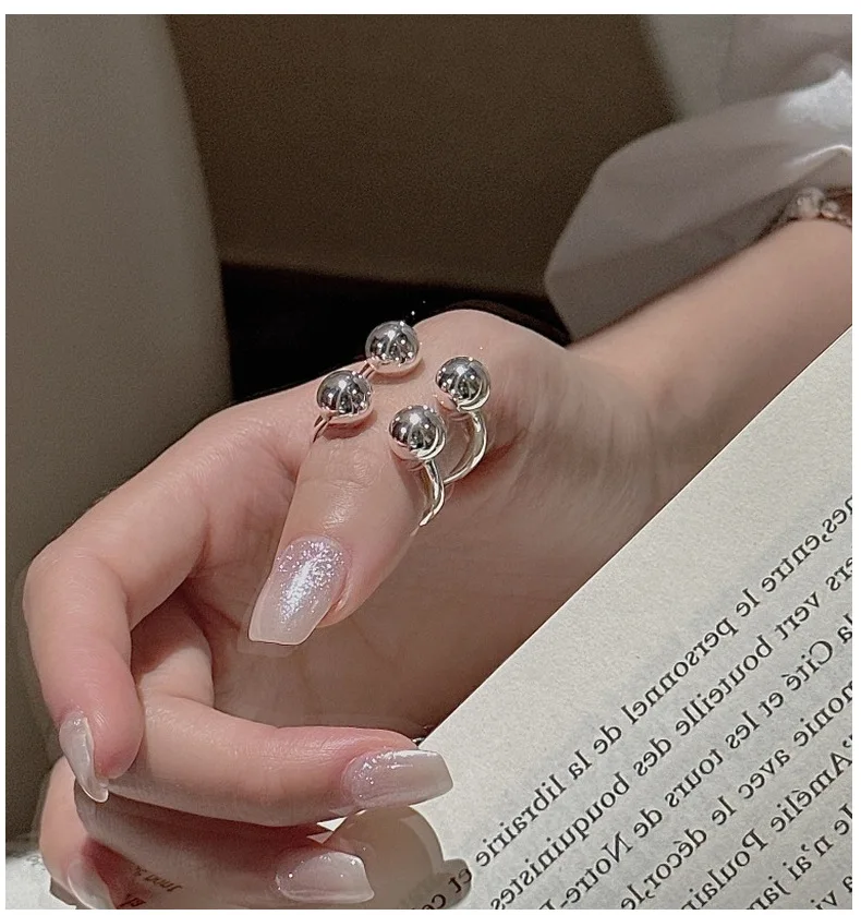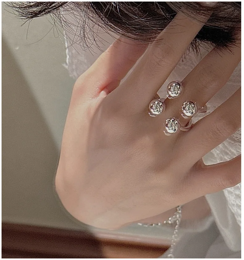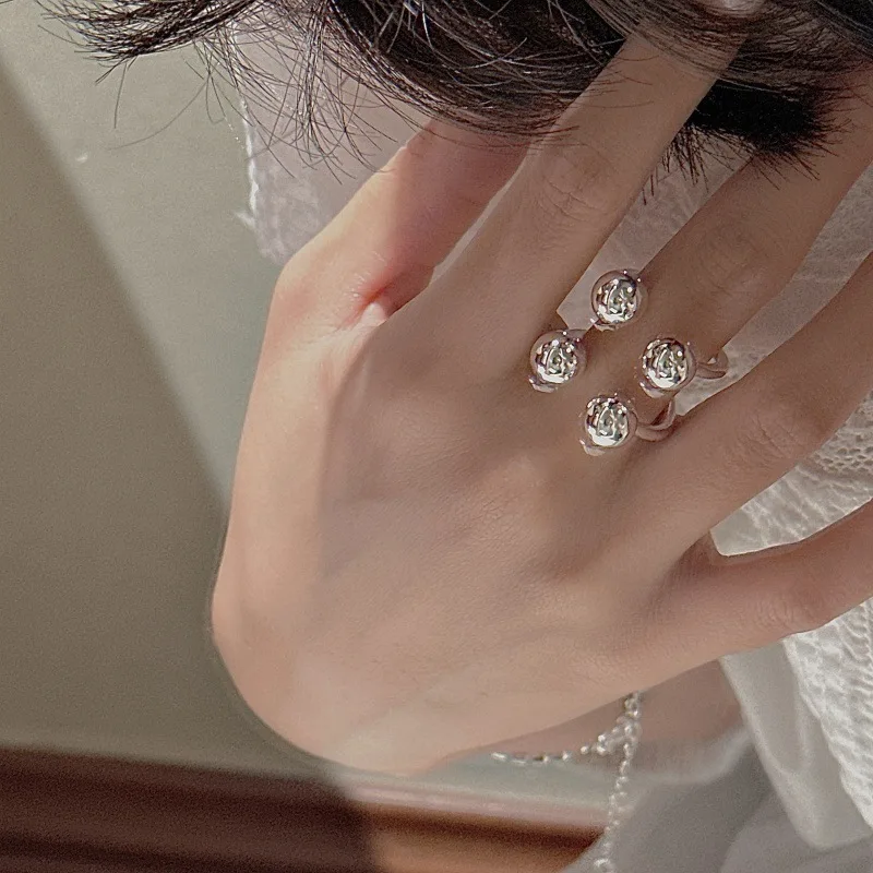 S925 Silver Polished Bead Ring Korean Vintage Style Textured Minimalist Dainty Wholesale Jewelry for Women