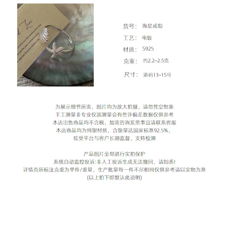S925 Silver Shell Starfish Ring Korean Vintage Style Ocean Theme Stacking Minimalist Dainty Wholesale Jewelry for Women