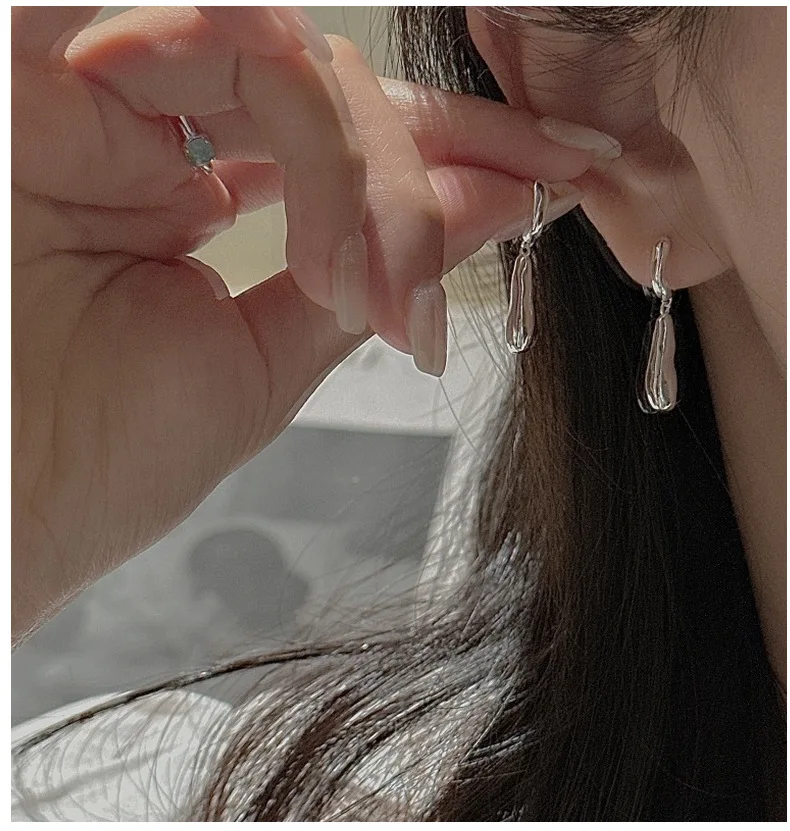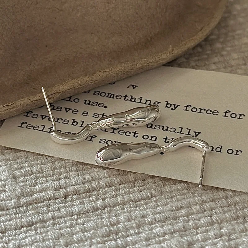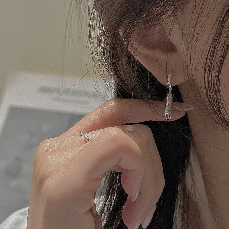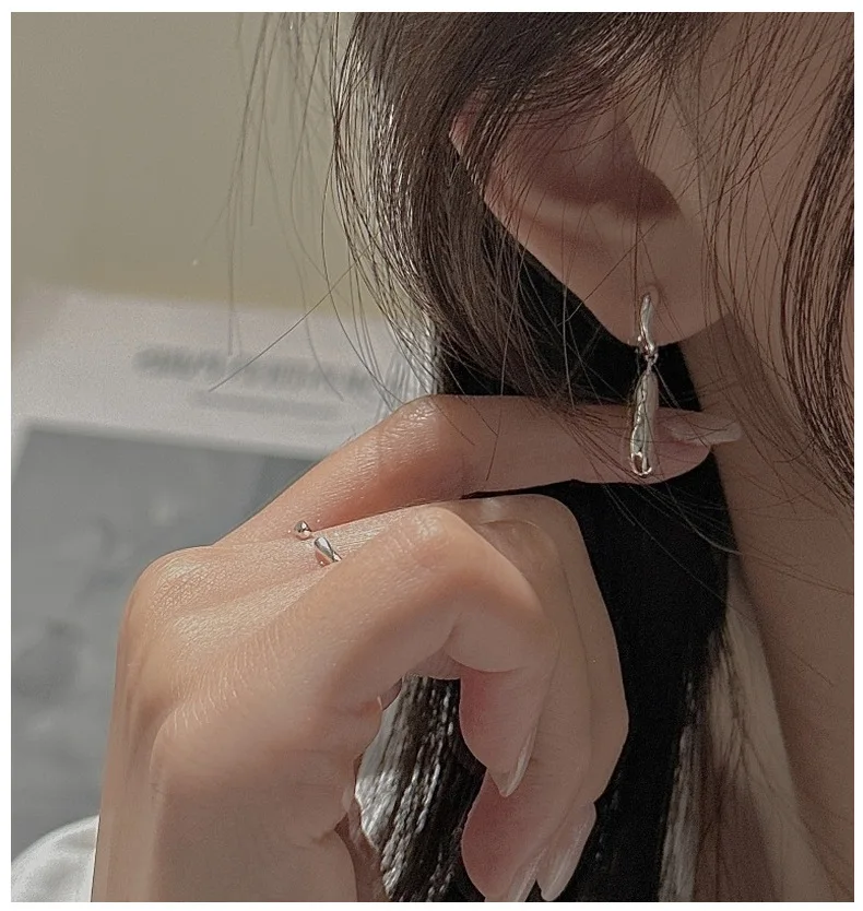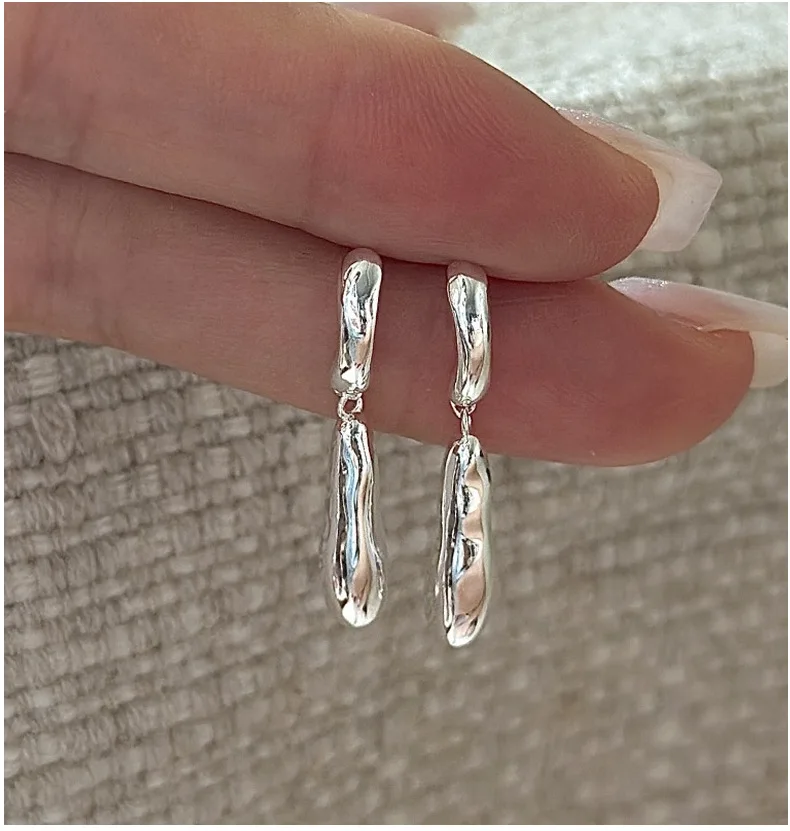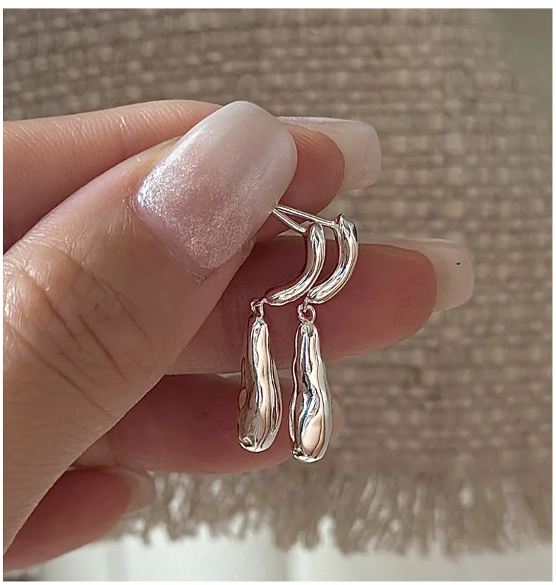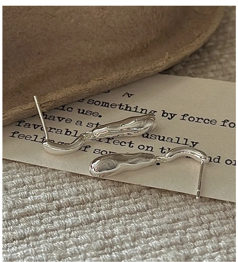 S925 Silver Teardrop Earrings Korean Vintage Style Textured Minimalist Dainty Wholesale Jewelry for Women