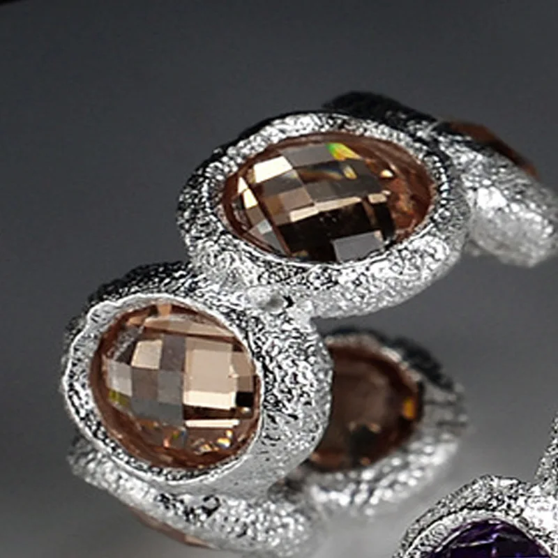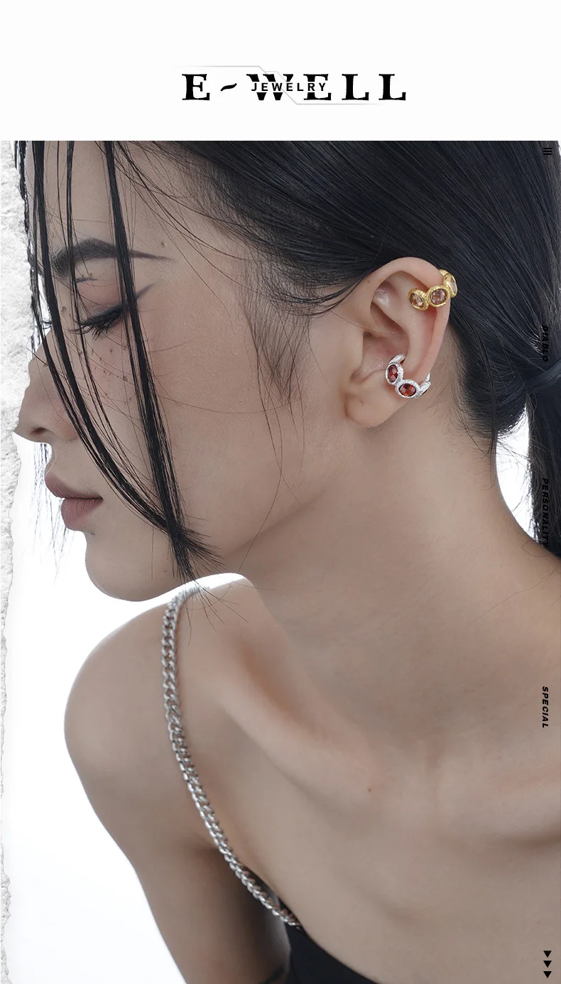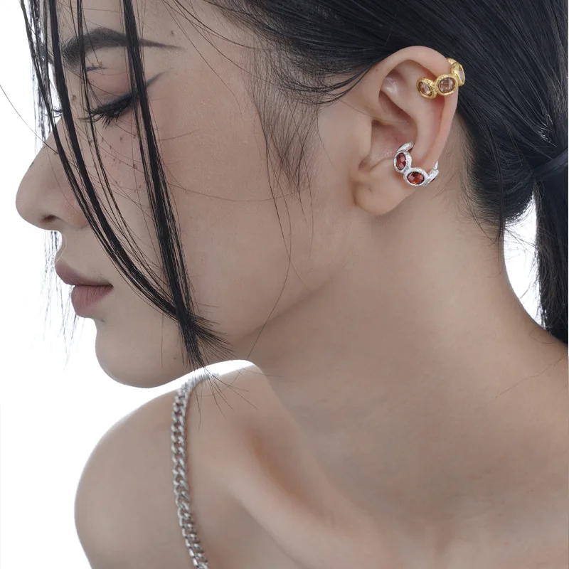 S925 Sterling Silver CZ Crystal Earing Jewelry Aretes Non Pierced Red Purple Shampagne Clipping Ear Cuff