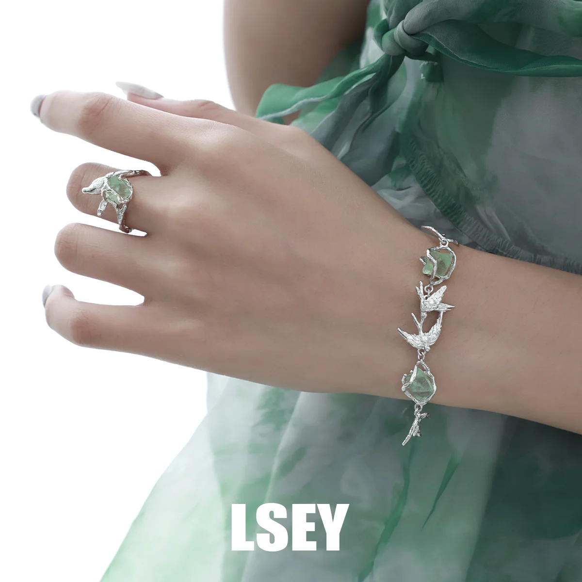 S925 sterling Silver Flying bird fluorite ring, high-end ring, women’s silver jewelry batch