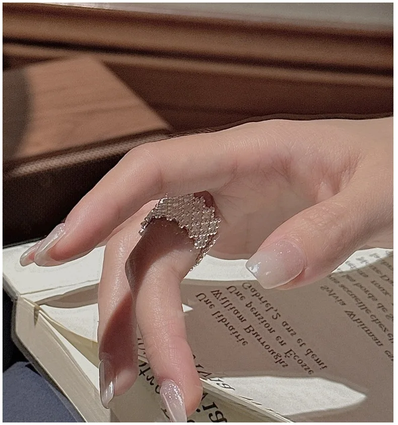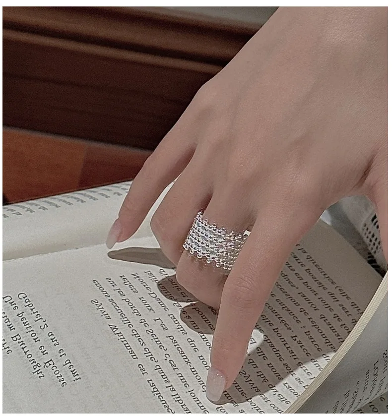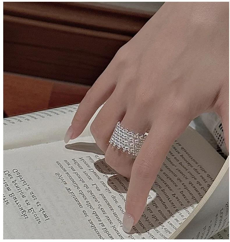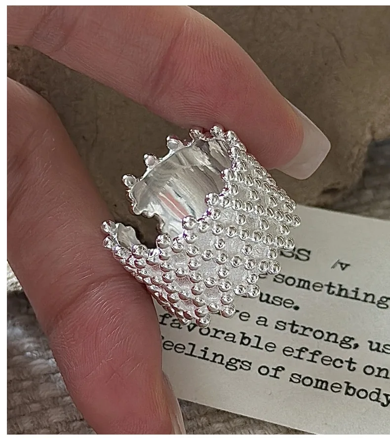 S925 Sterling Silver Korean Version of Niche Design Retro Matte Bead Ring Korean Style Simple Fashion Ring
