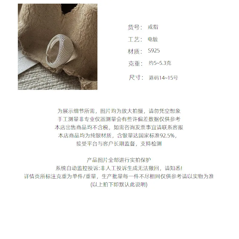 S925 Sterling Silver Korean Version of Niche Design Retro Texture Simple Basic Ring South Korea’s Fashion Ring