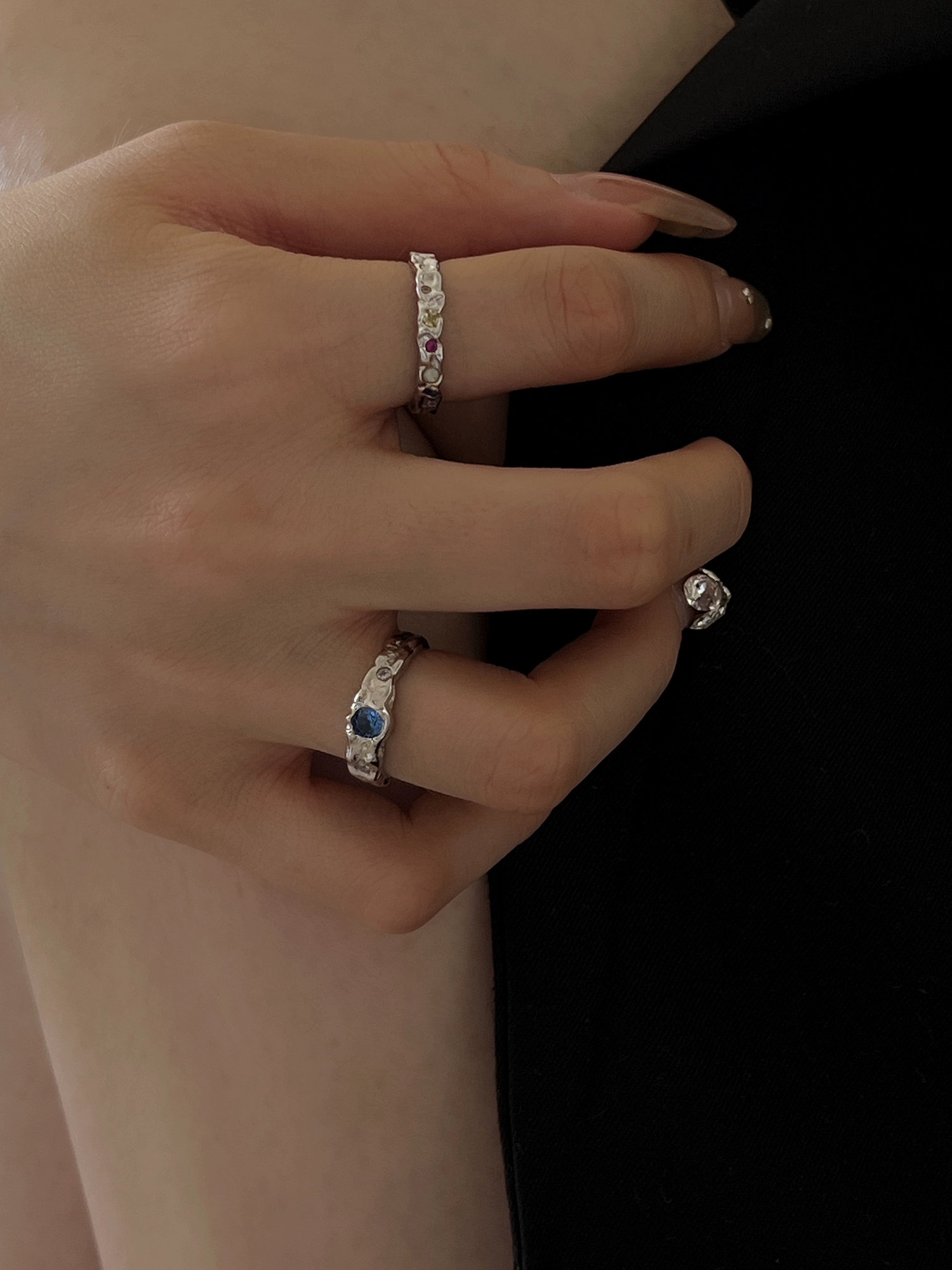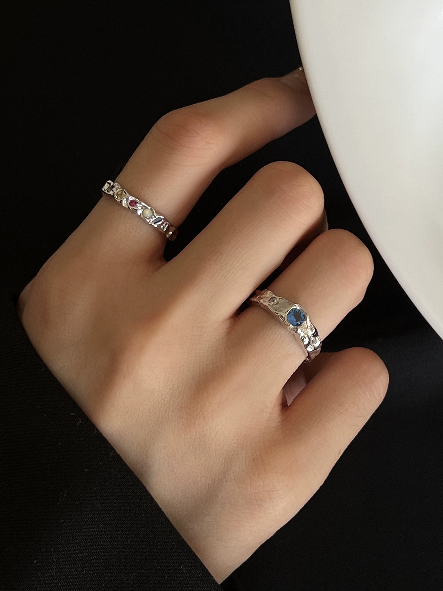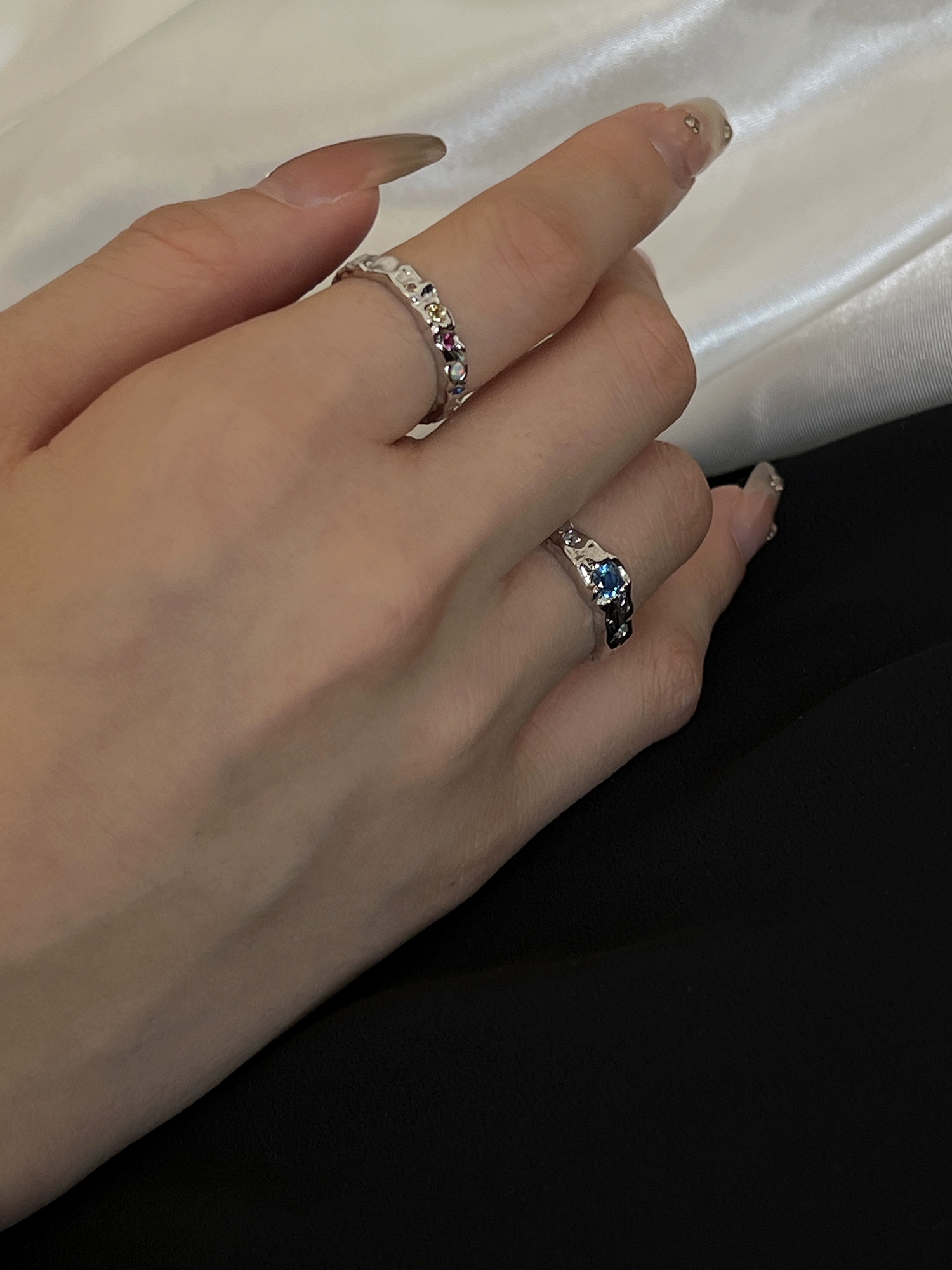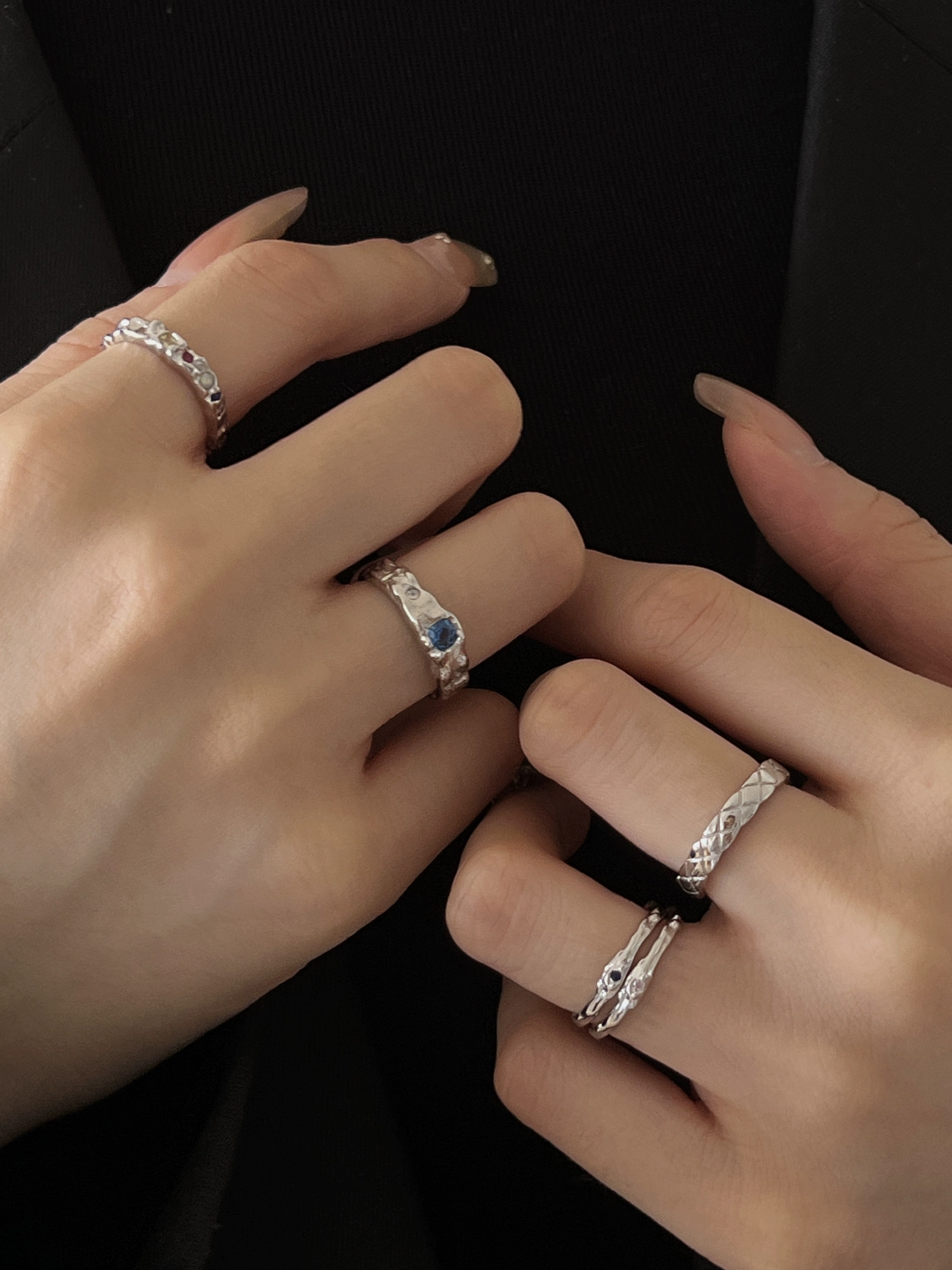 S925 sterling silver light luxury high-end pleated texture colored zircon ring blue zircon personalized index finger ring trend