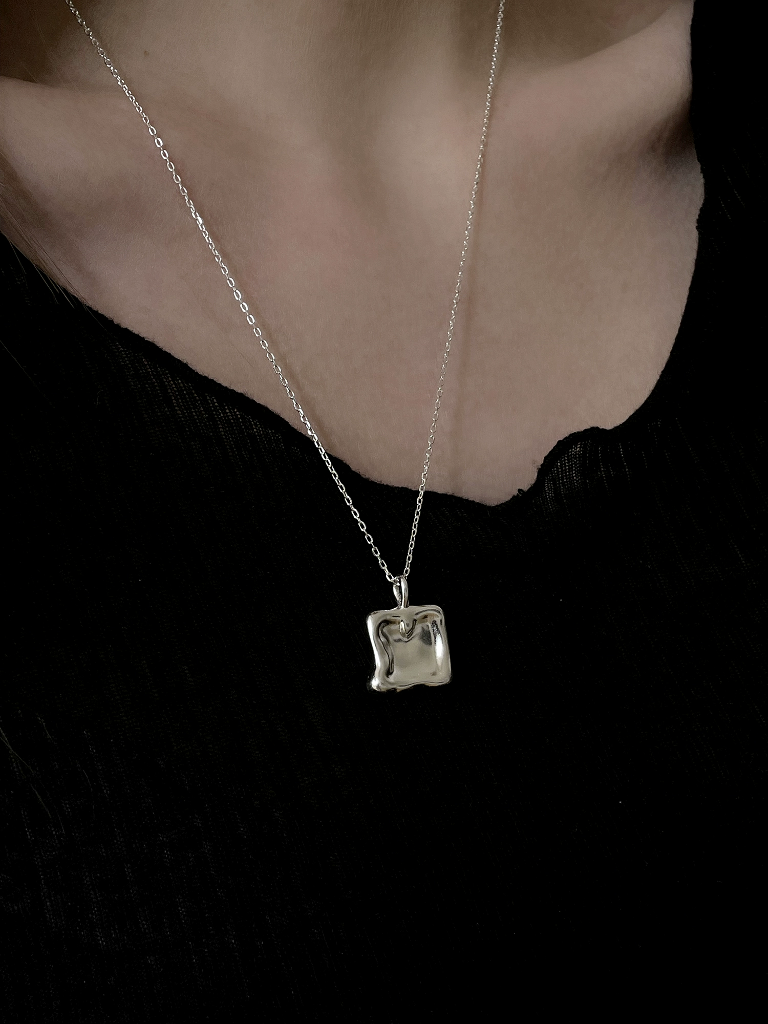S925 sterling silver necklace women’s niche design high-end frosted texture geometric square pendant clavicle chain silver jewelry
