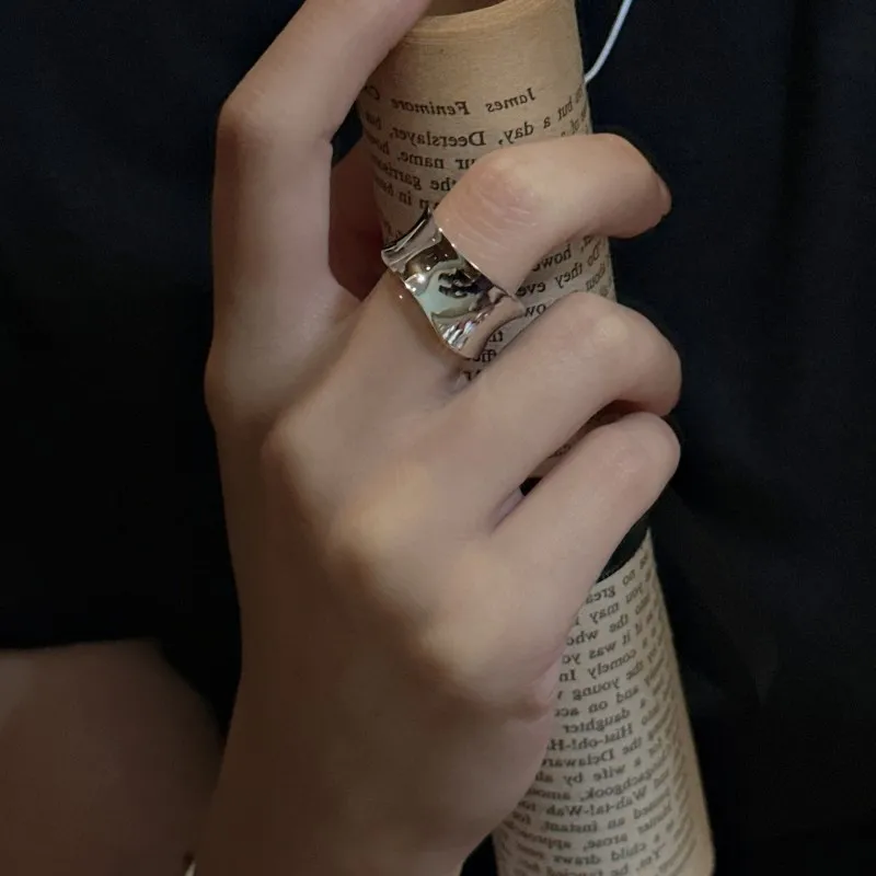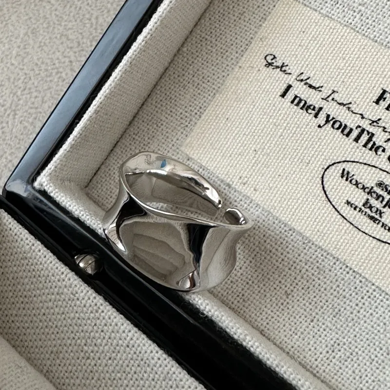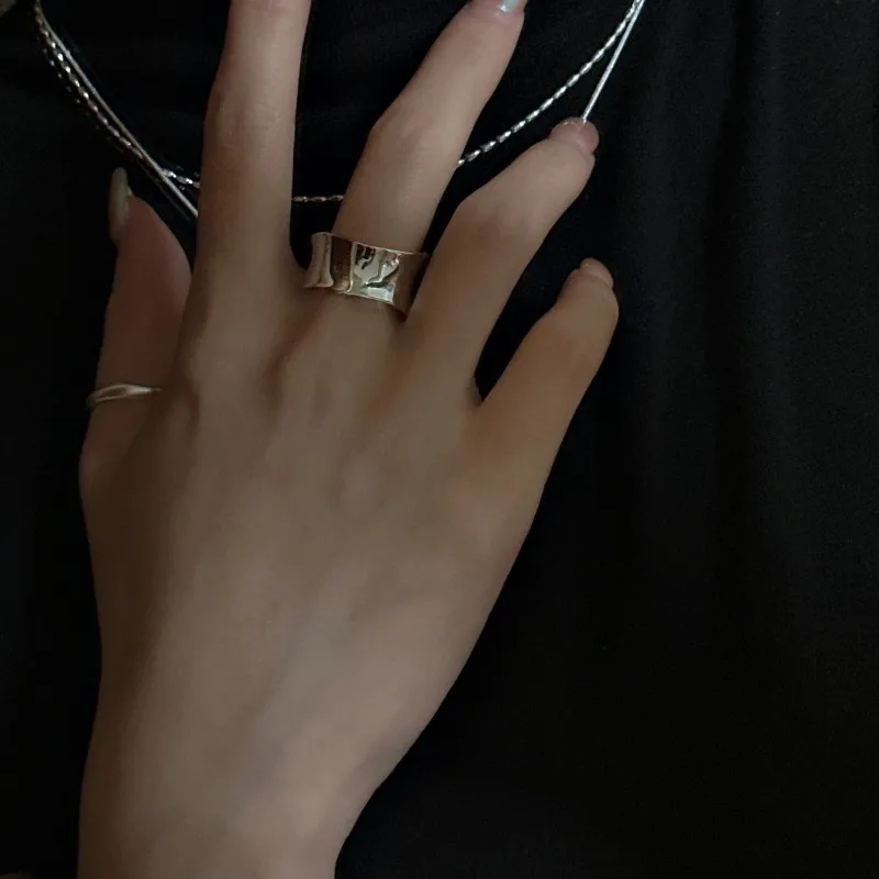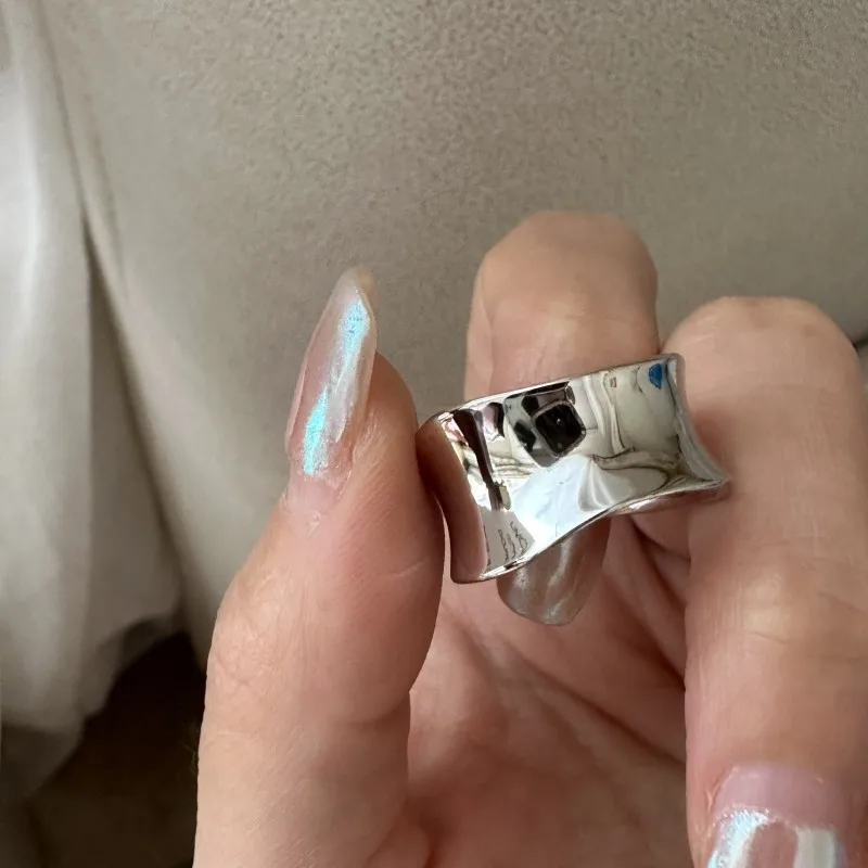S925 sterling silver niche design sense arc texture white gold ring simple texture style ring wholesale