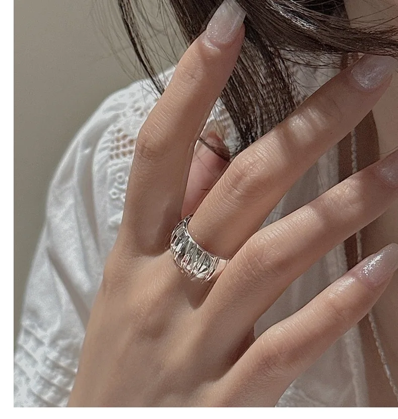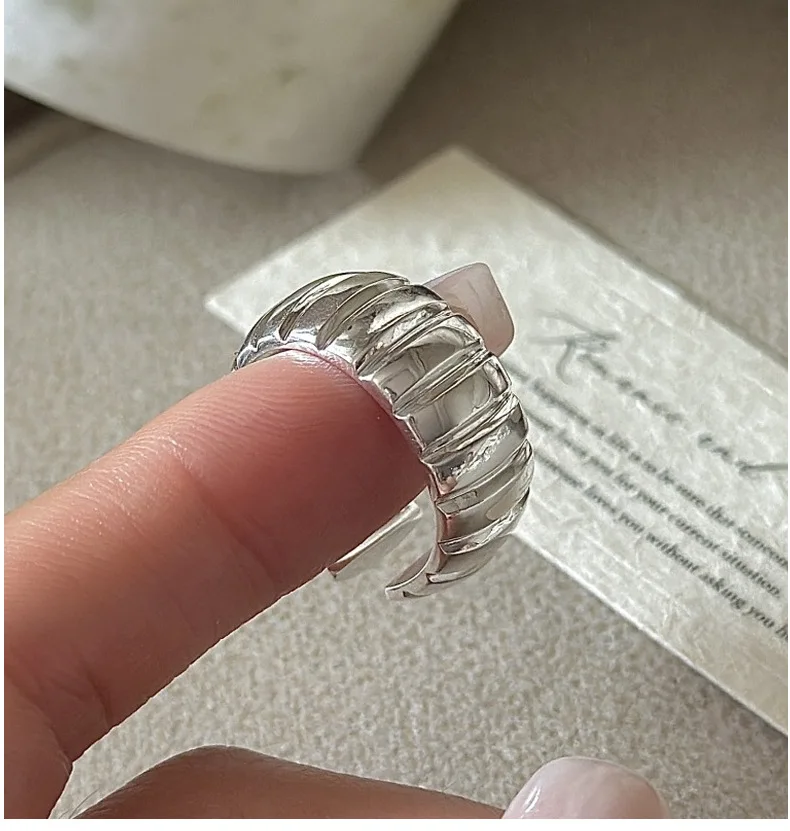 S925 Sterling Silver Niche Design Sense Retro Simple Basic Ring Korean Version Korean Style Fashionable Ring Wholesale