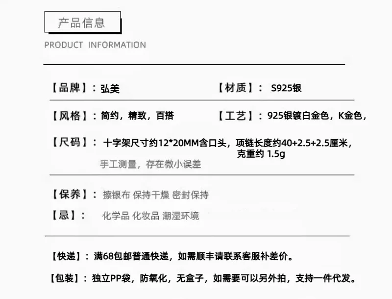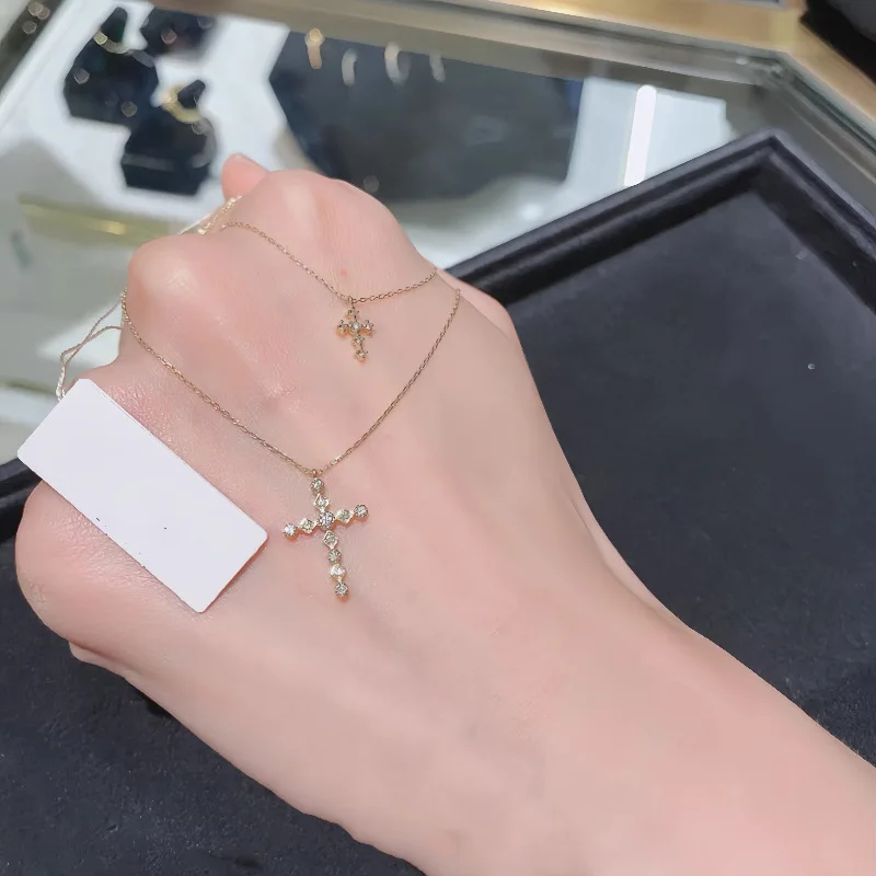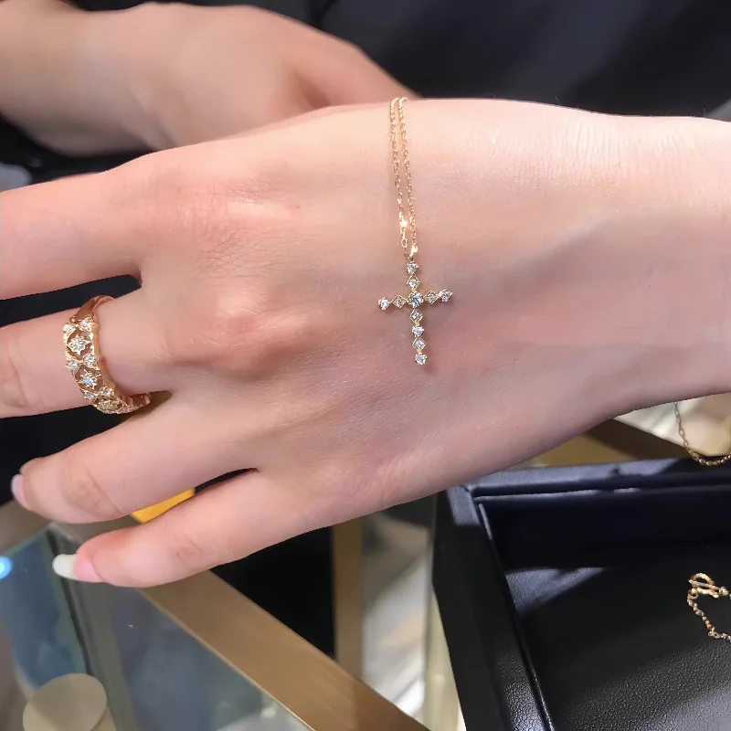 S925 Sterling Silver Plated 18K Gold Diamond Cross Necklace Women’s Niche Light Luxury High Sense Versatile Clavicle Chain