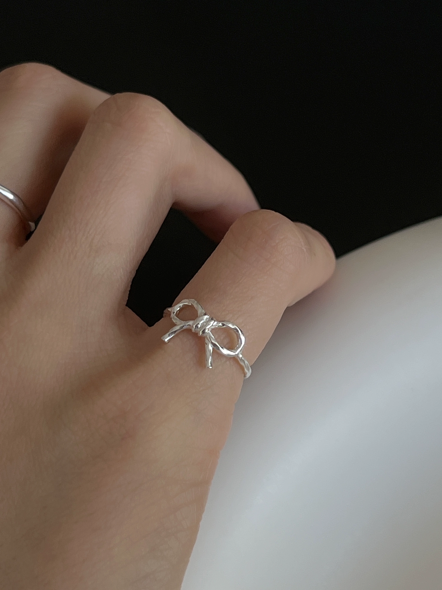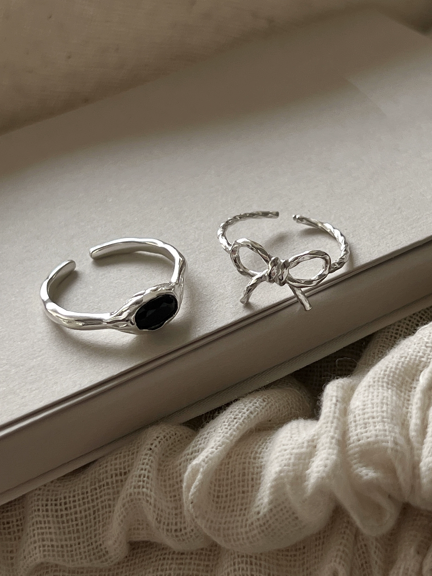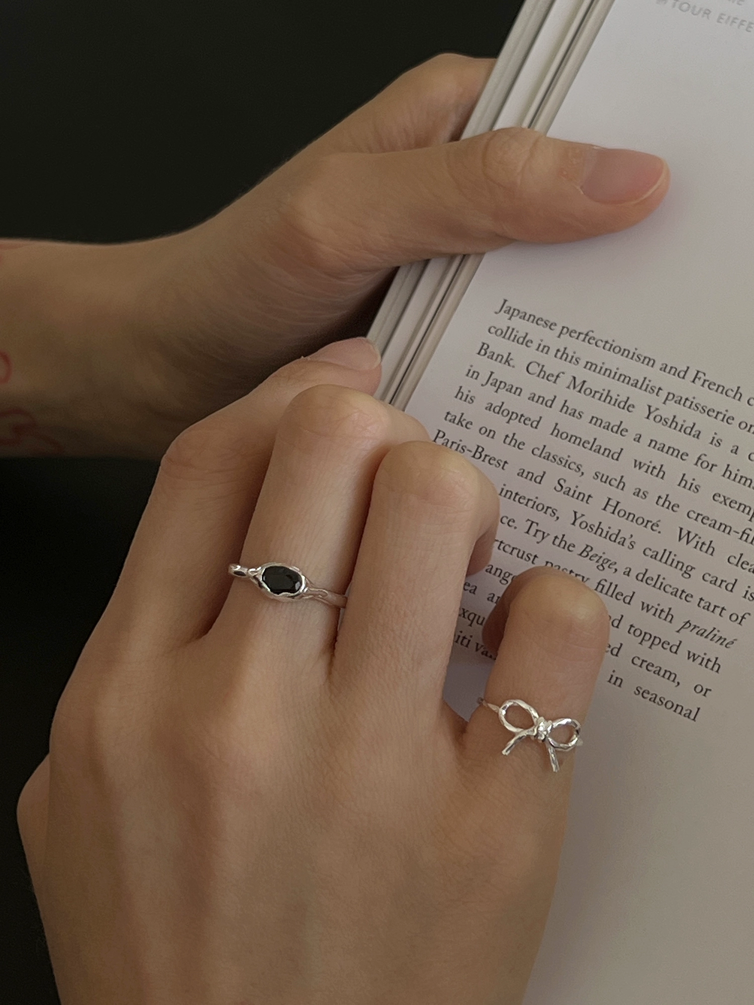 S925 sterling silver sweet cool black zircon ring women’s open ring simple sweet temperament bow personalized tail ring