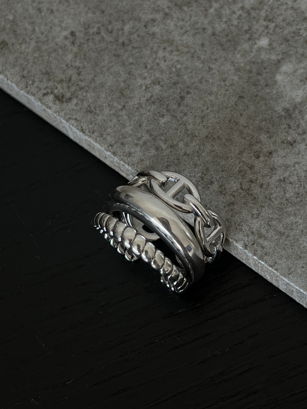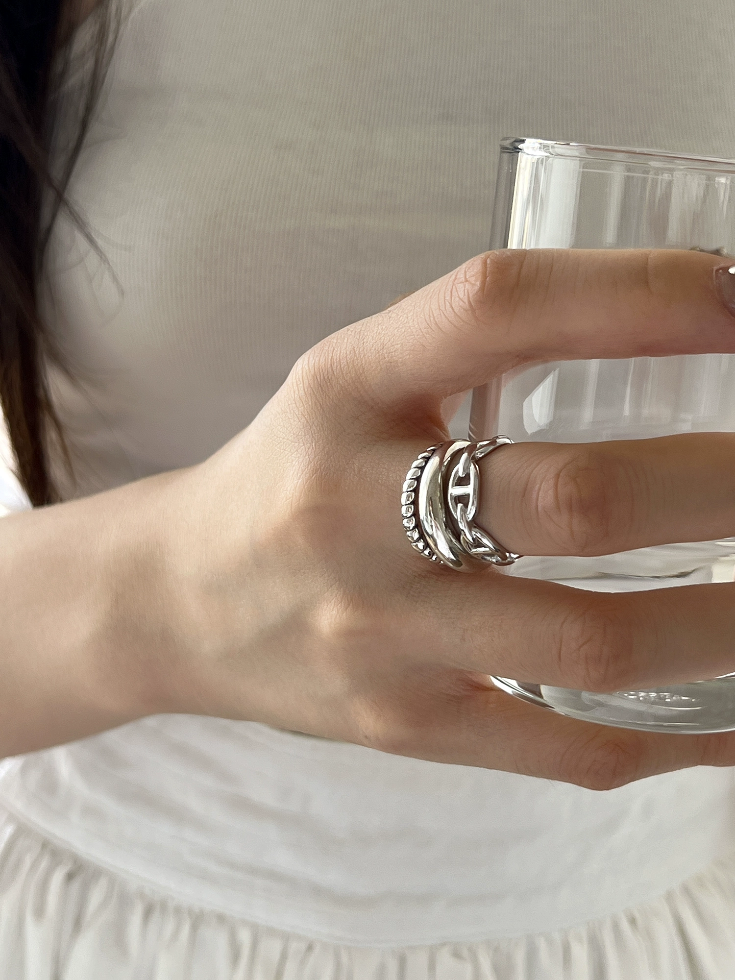 S925 sterling silver women’s ring niche design minimalist twisted double-layer ring old texture pig nose index finger ring trend