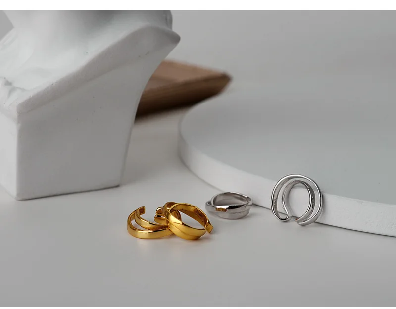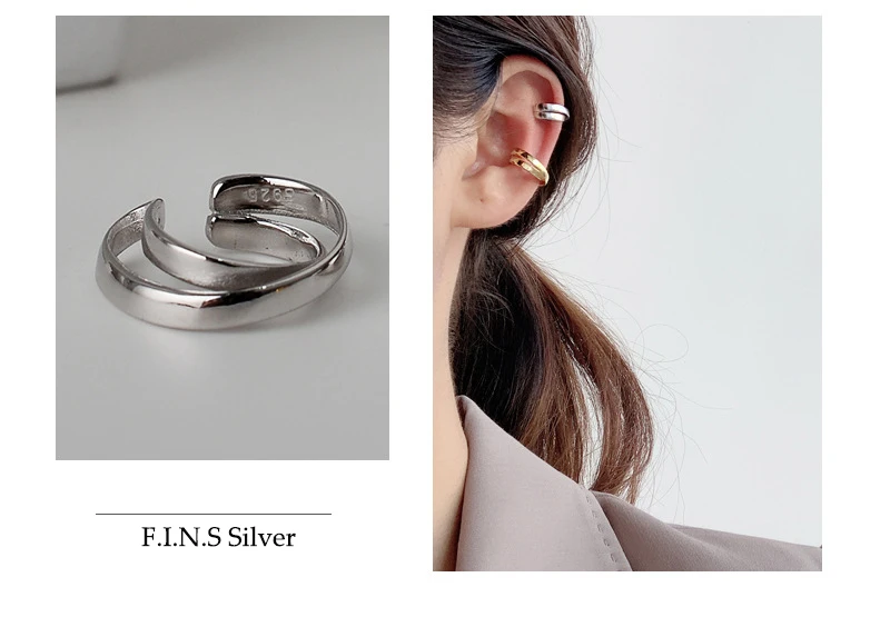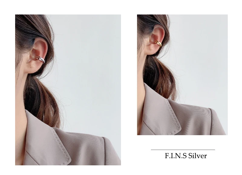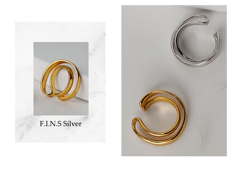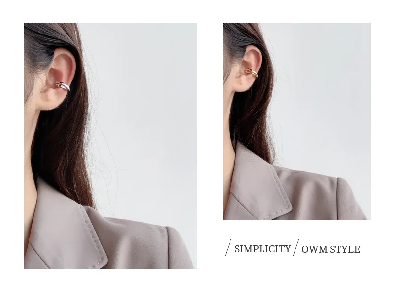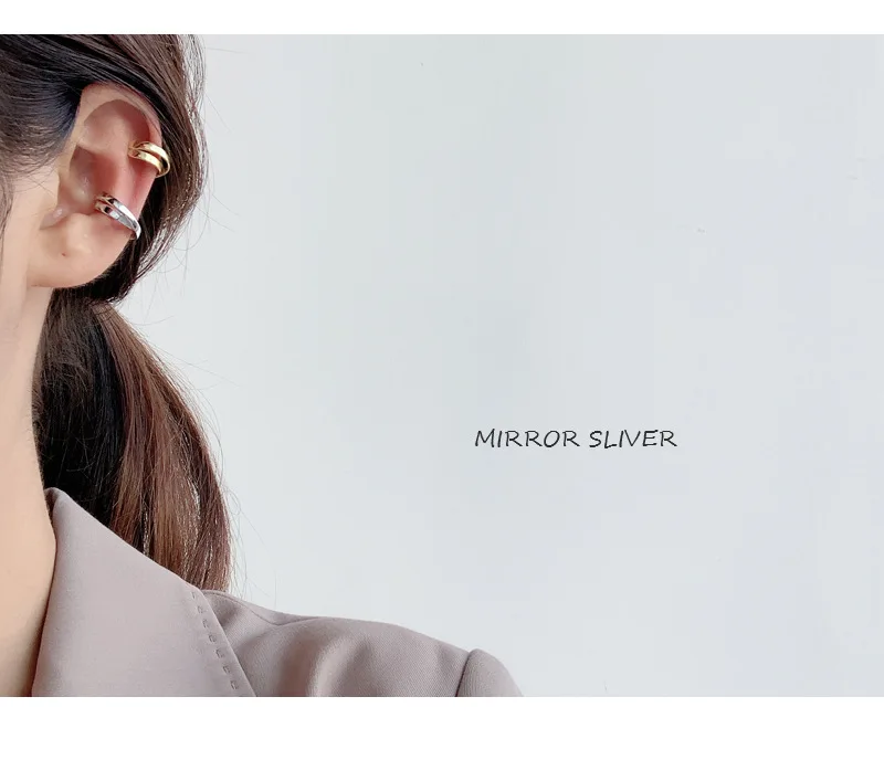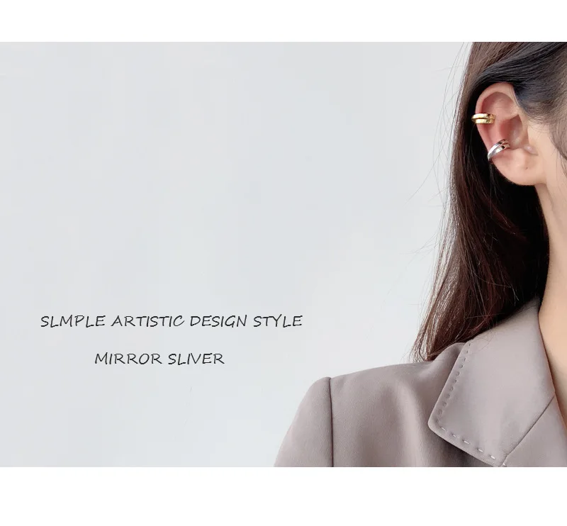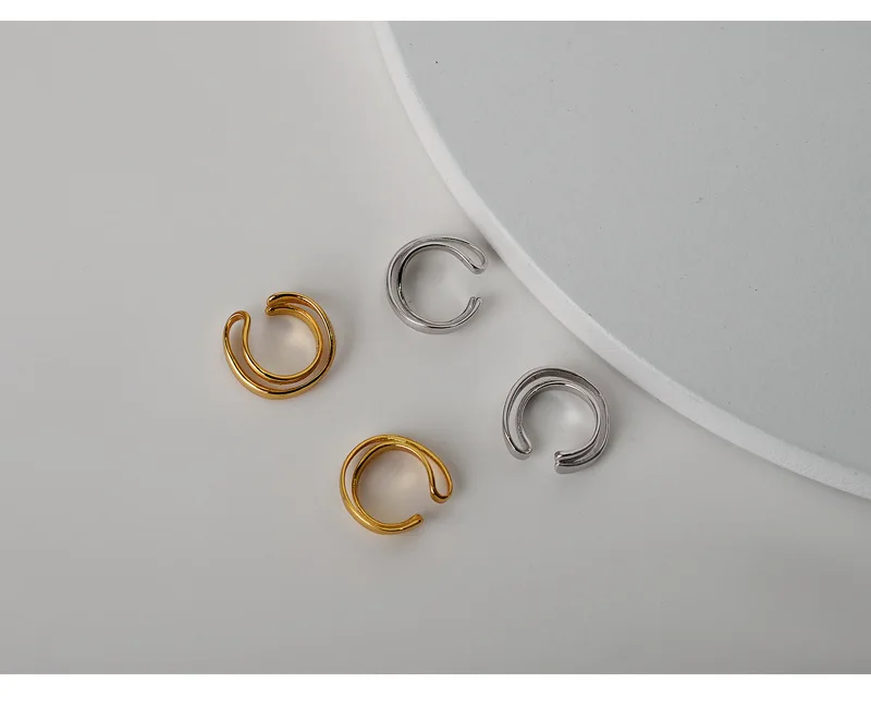 Simple 925 Sterling Silver Ear Clip Double Layer G...