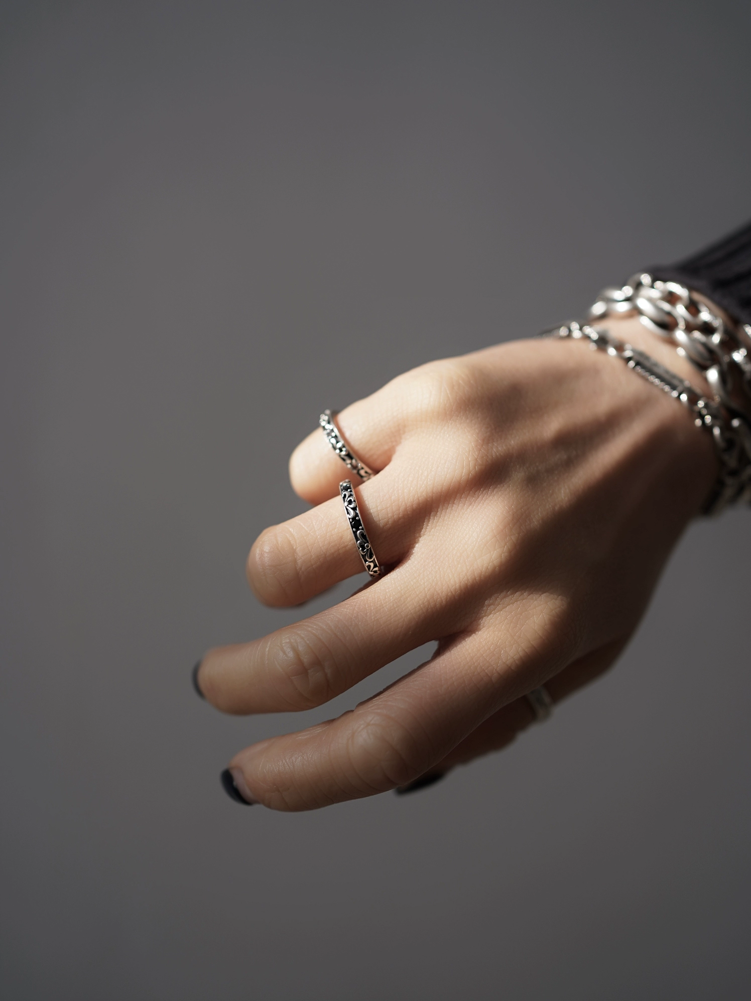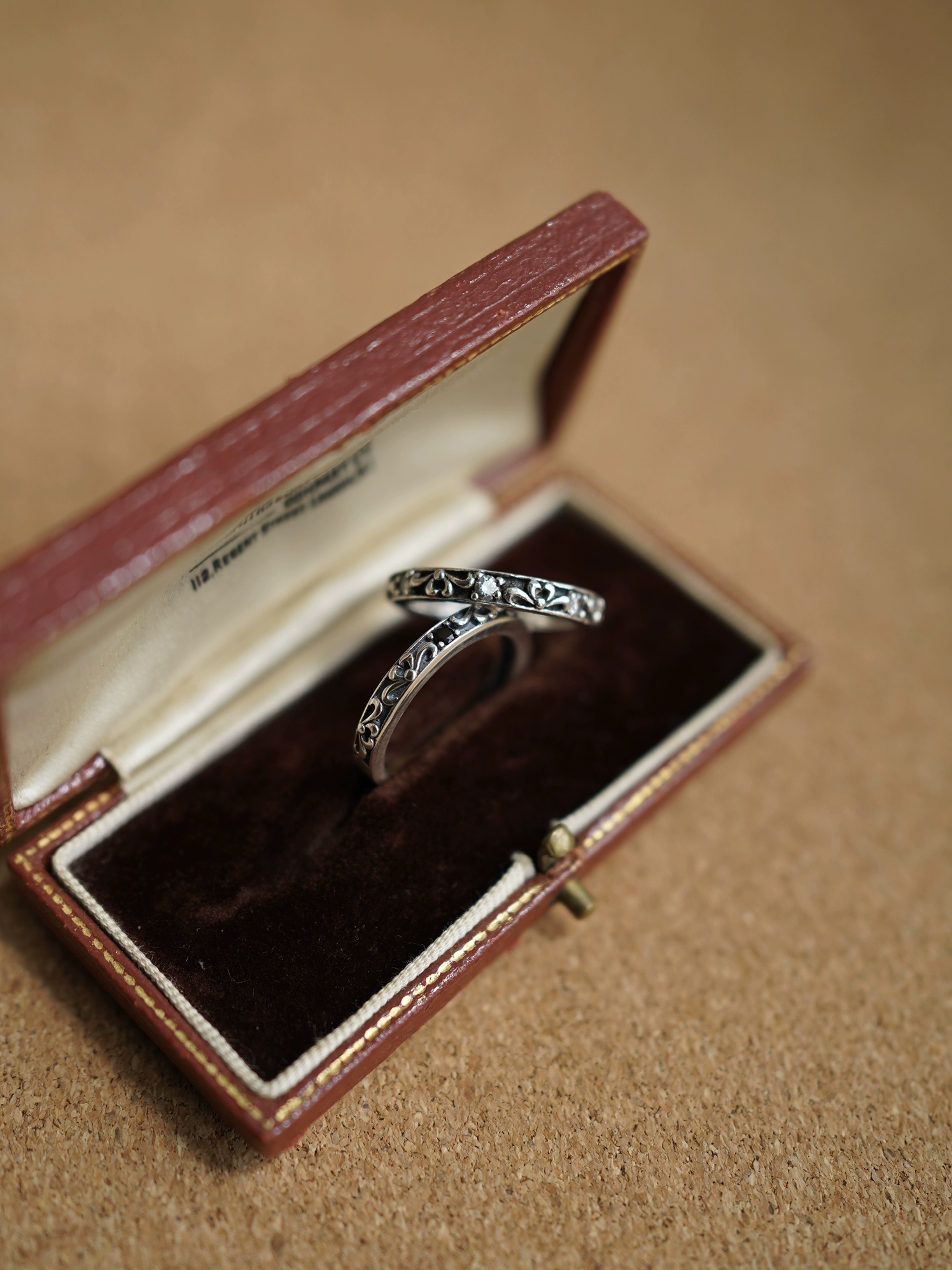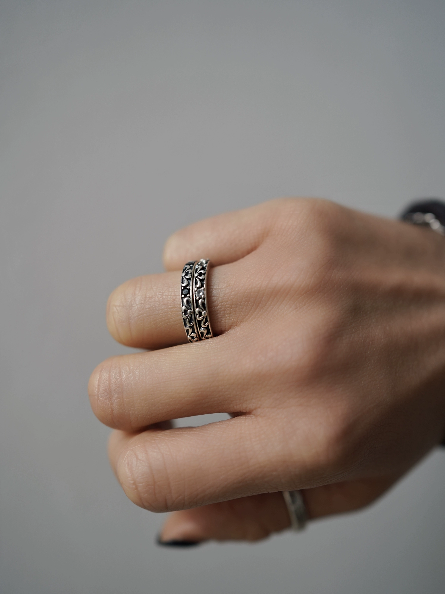 Water lily 925 sterling silver ring Tang grass pattern zircon element niche design retro versatile ring