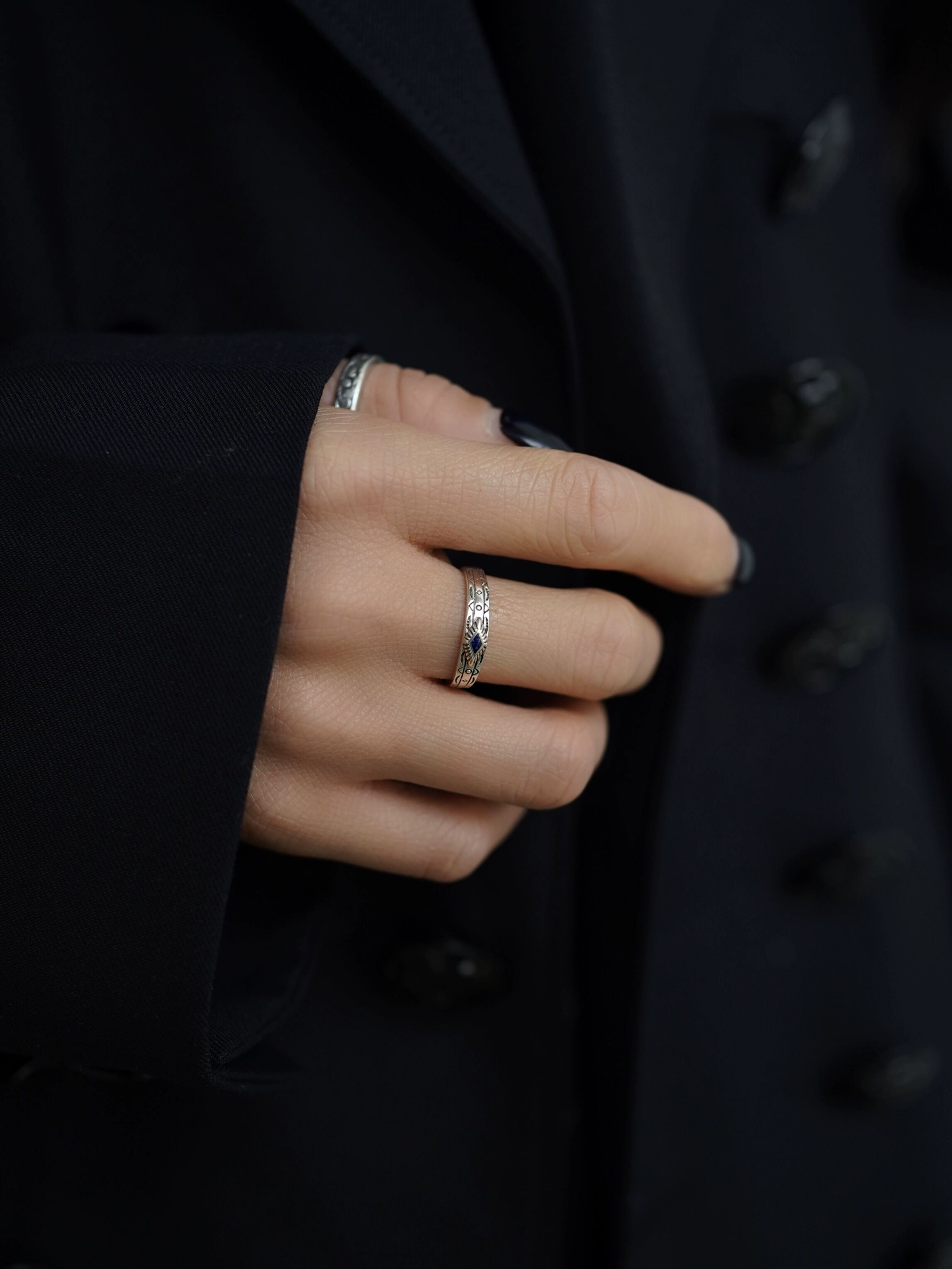 Water lily life after life 925 sterling silver ring Indian pattern lapis lazuli natural gem Ami khaki tail ring